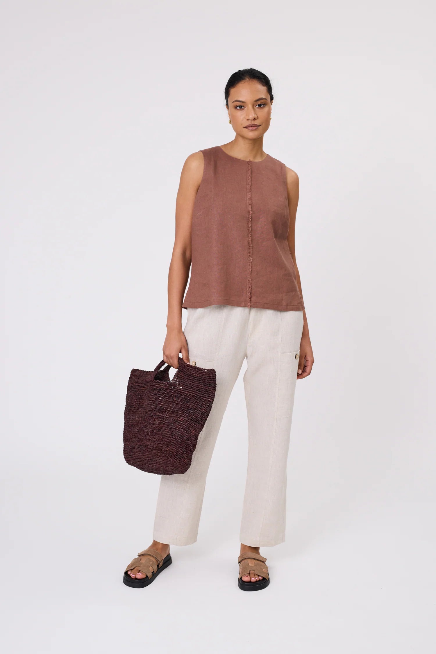 SIZE ON TAG: 6FITS LIKE: N/ACOLOUR: Creamy whiteFABRIC: CottonCONDITION: Excellent prelovedMEASUREMENTS:BUST: 44cms WAIST: 46cm-Free LENGTH: 47cmsNOTES: Contemporary sleeveless top, paired seamlessly with the Zoey Twill Skirt. Relaxed...