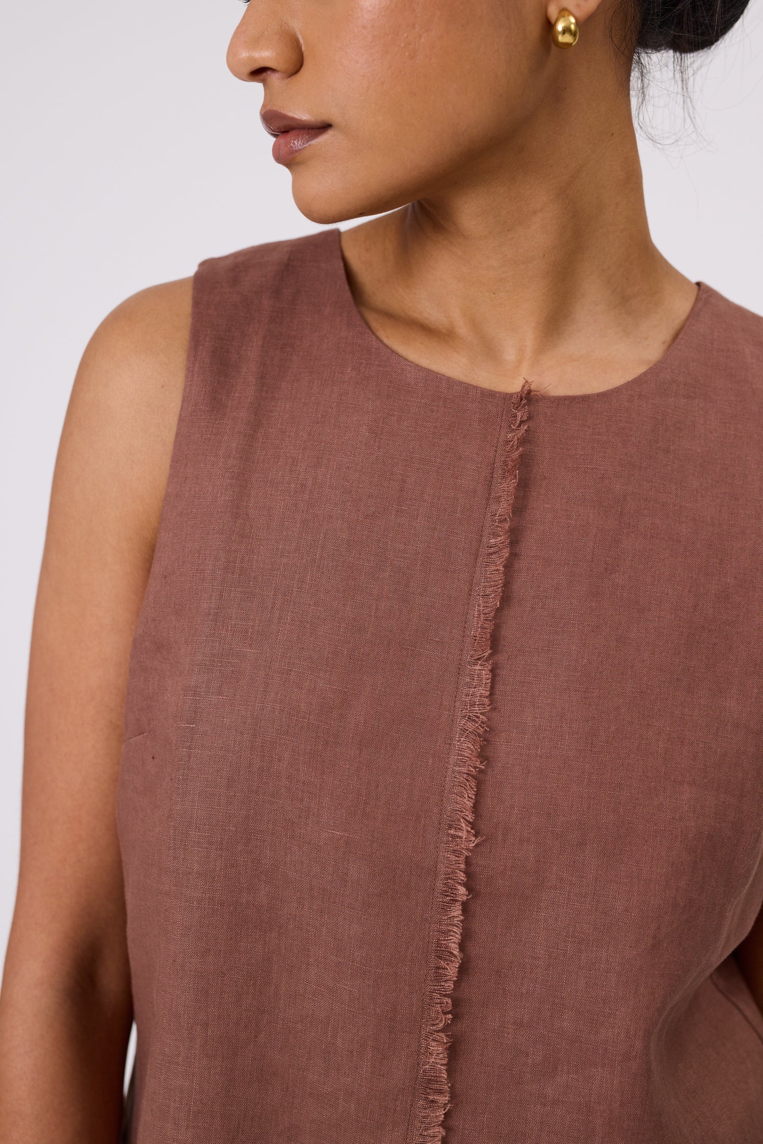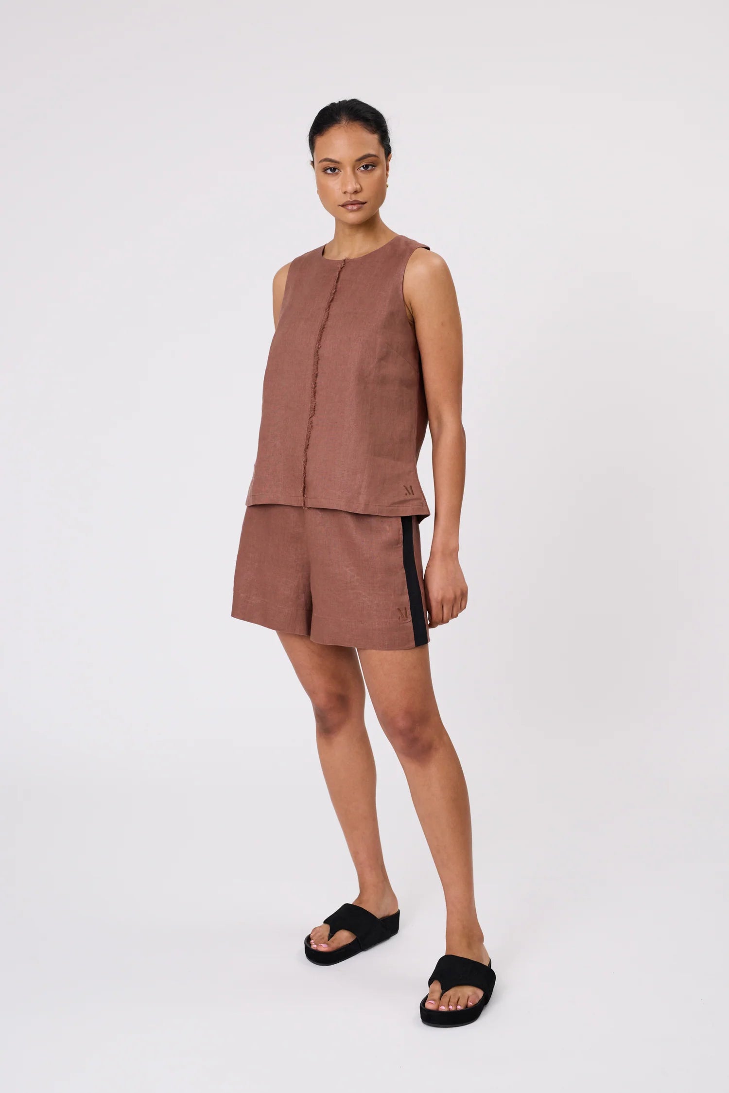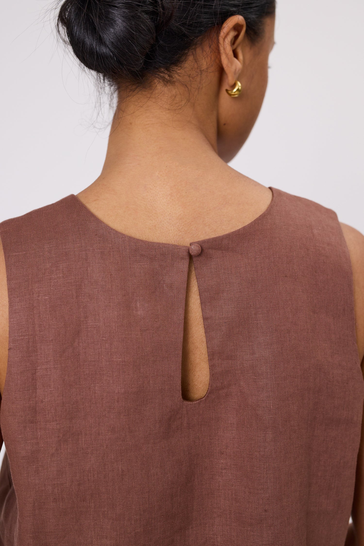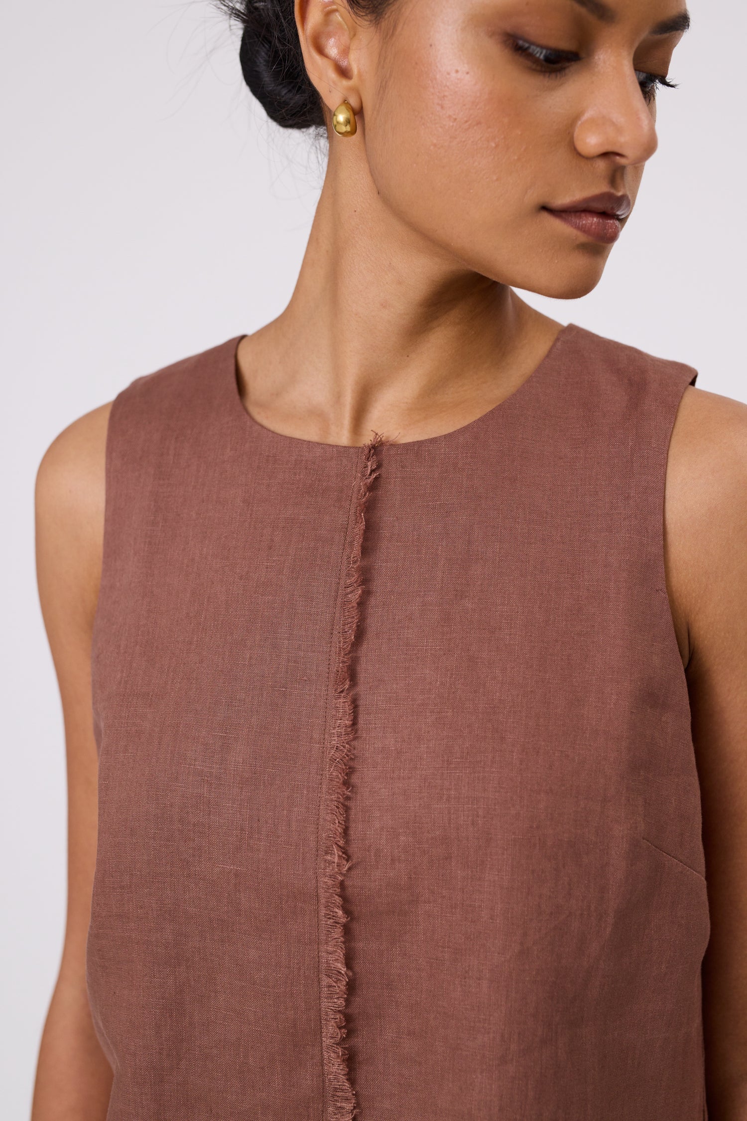 SIZE ON TAG: XLFITS LIKE: 16COLOUR: Burnt UmberFABRIC: Linen, Trim - polyester CONDITION: Like newMEASUREMENTS:BUST: 57cms WAIST: 58cms LENGTH: 63cmsNOTES: Matching pants also listed.Based on the highly...