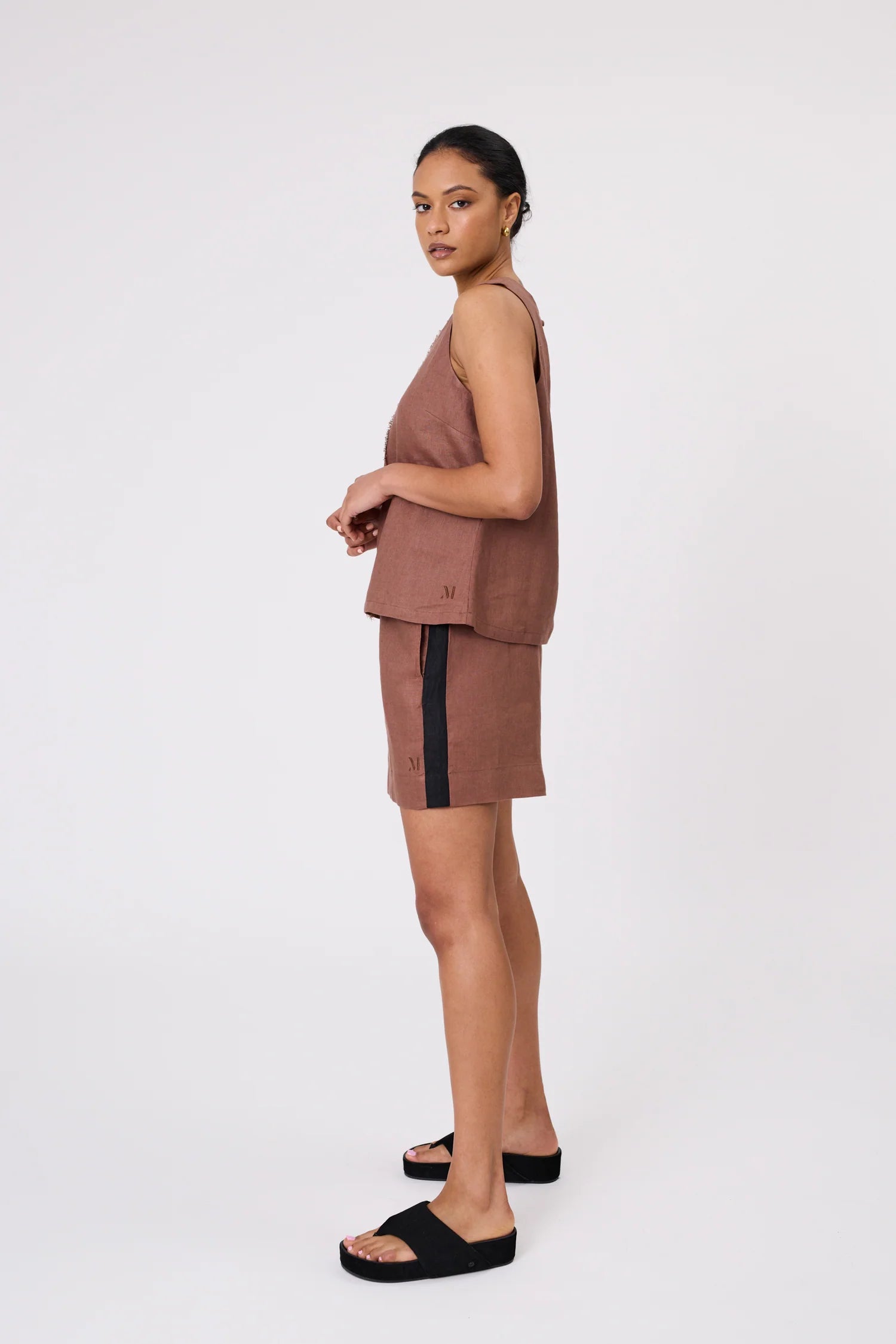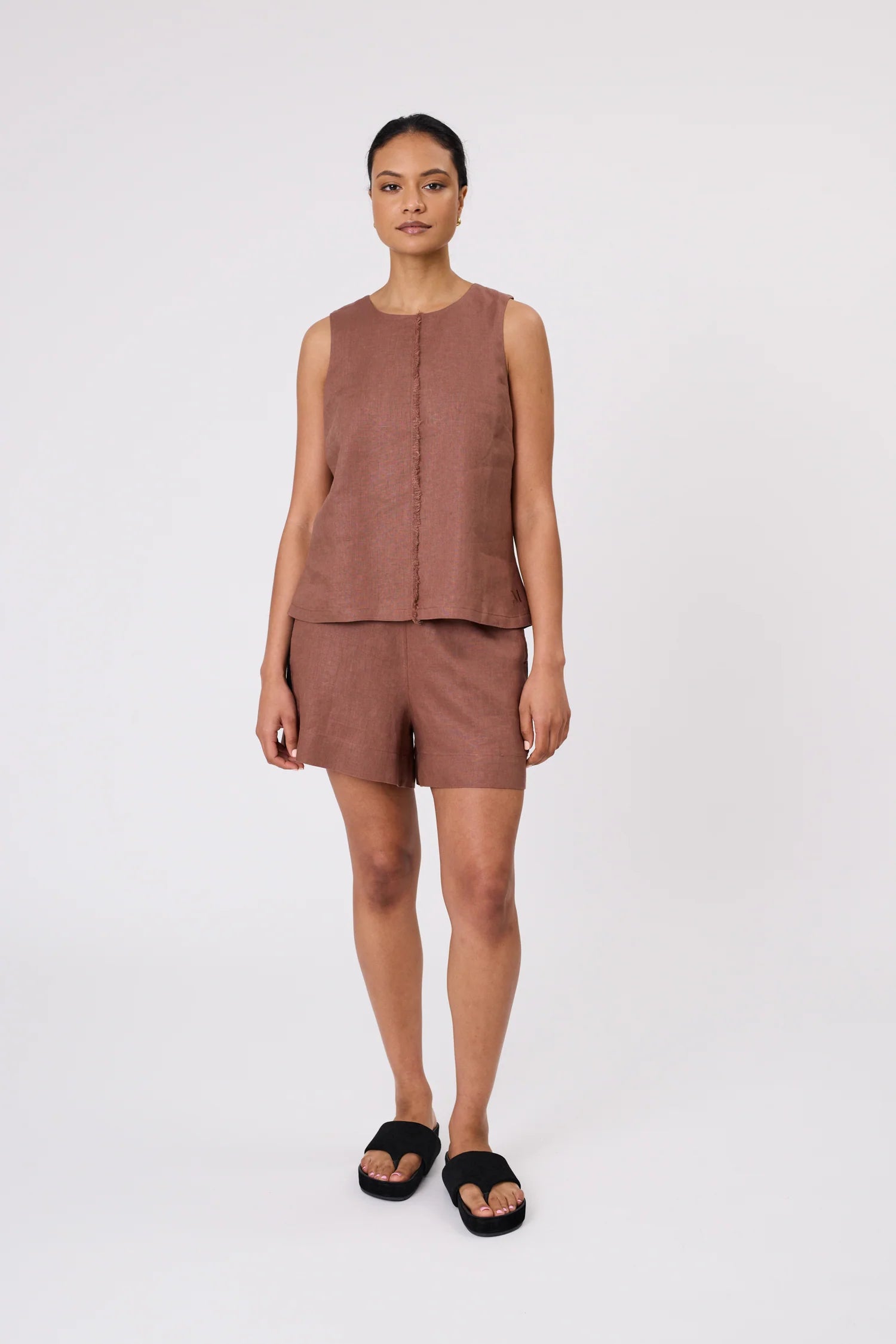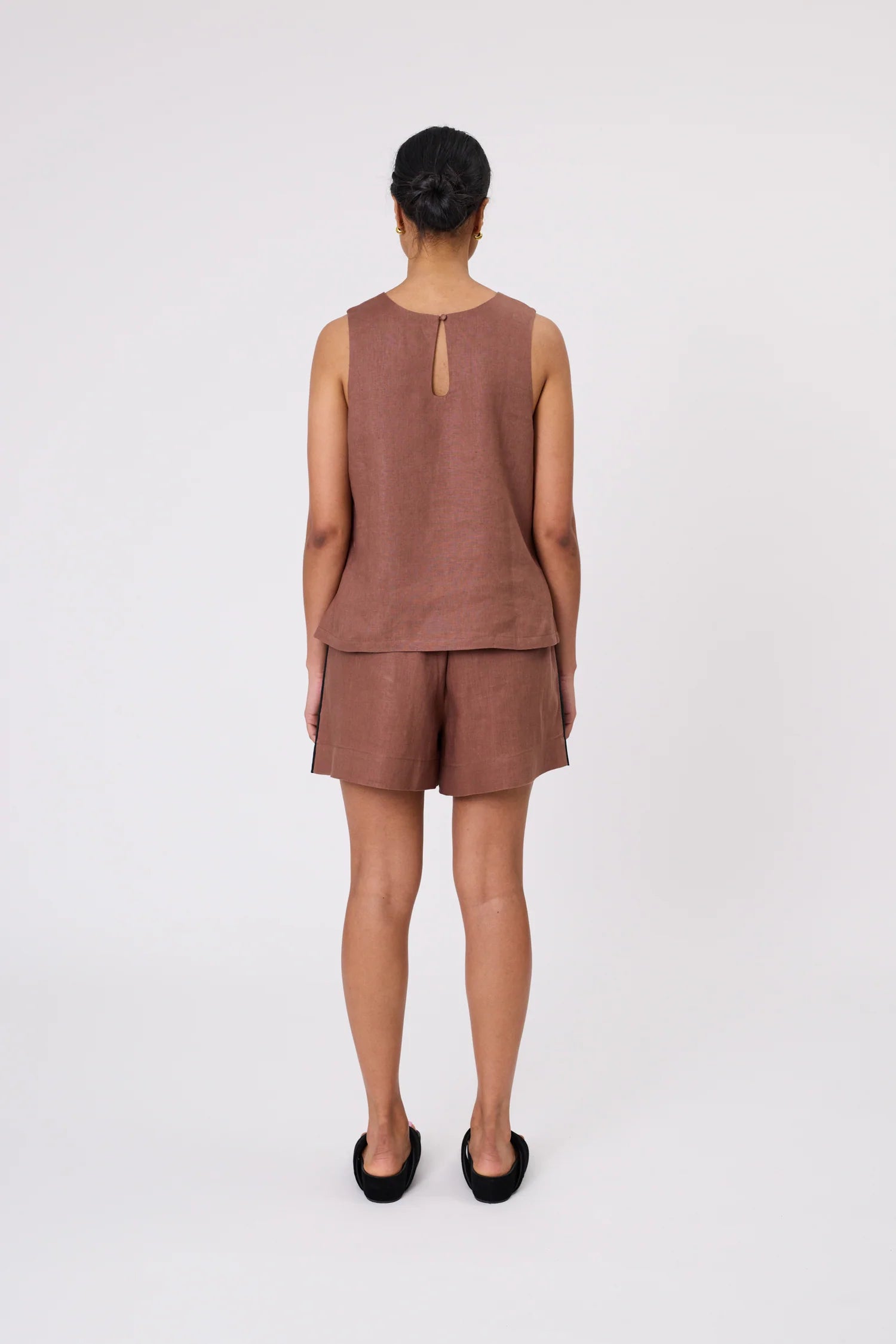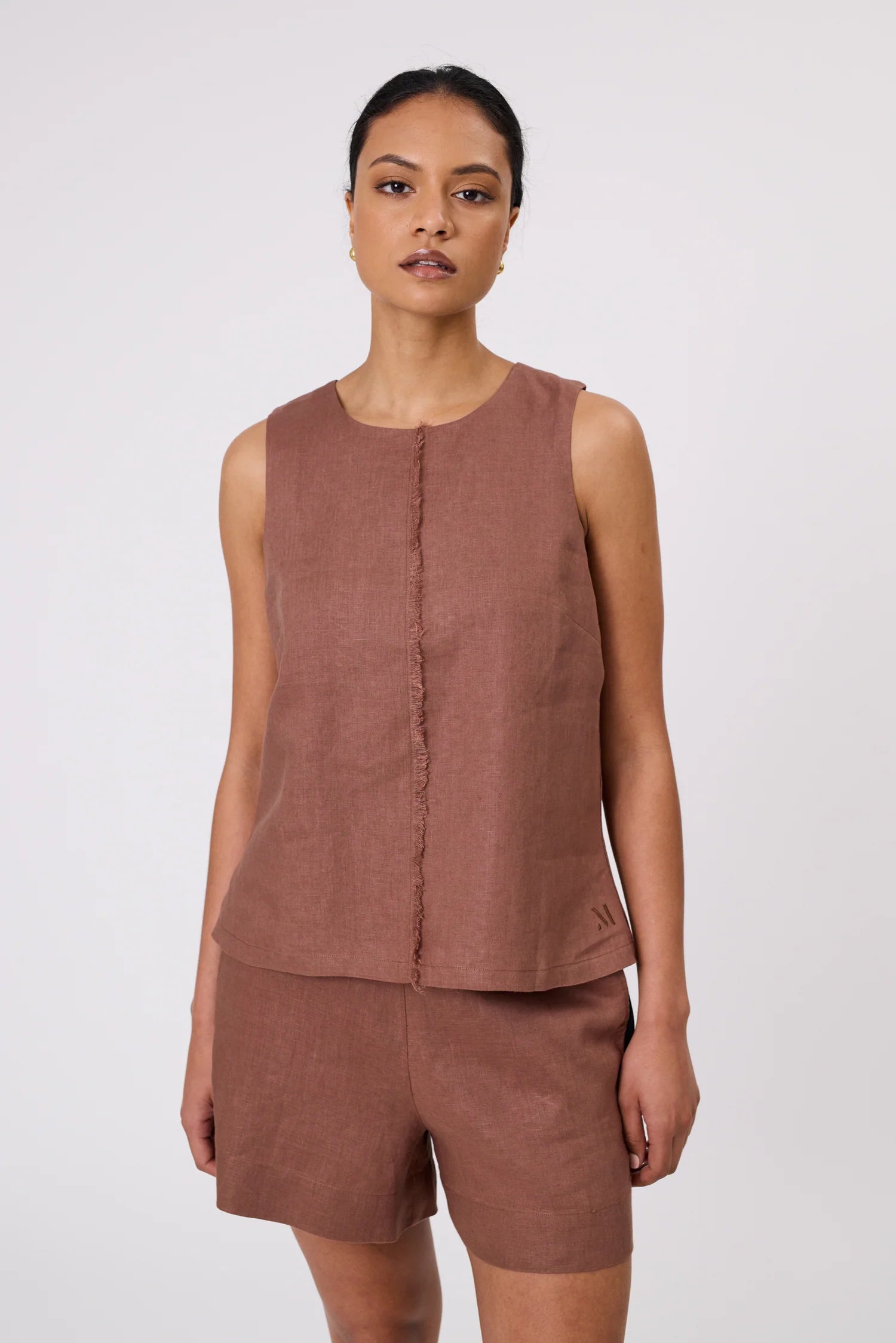 SIZE ON TAG: XLFITS LIKE: 16COLOUR: Burnt UmberFABRIC: Linen, Trim - polyester CONDITION: Like newMEASUREMENTS:BUST: 57cms WAIST: 58cms LENGTH: 63cmsNOTES: Matching pants also listed.Based on the highly...