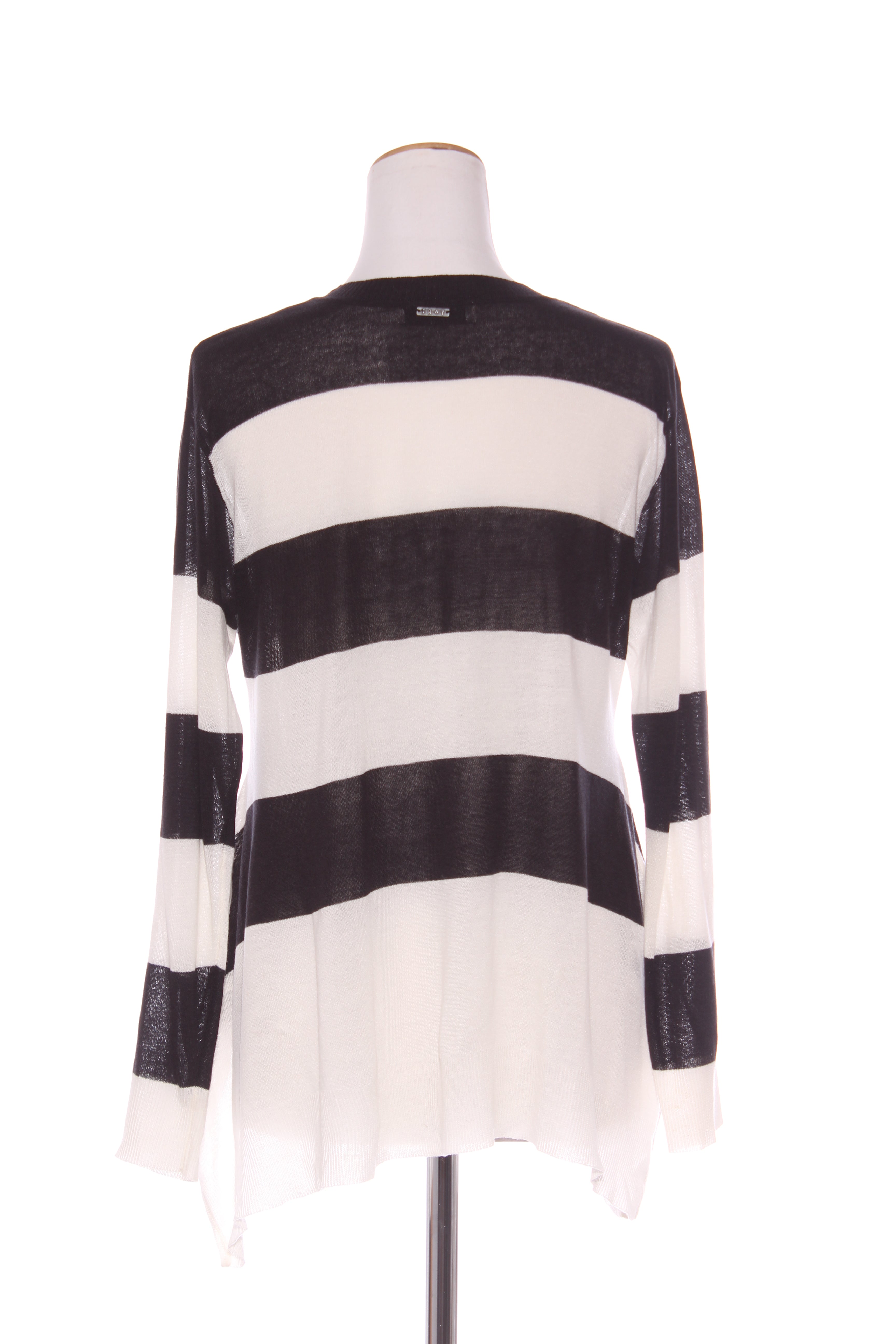 SIZE ON TAG: LFITS LIKE: 14COLOUR: Black, whiteFABRIC: 55% acrylic, 25% tencel, 20% linenCONDITION: Excellent prelovedMEASUREMENTS:BUST: 51cms WAIST: 52cms LENGTH: 69-79cmsNOTES: Fabric has stretch.