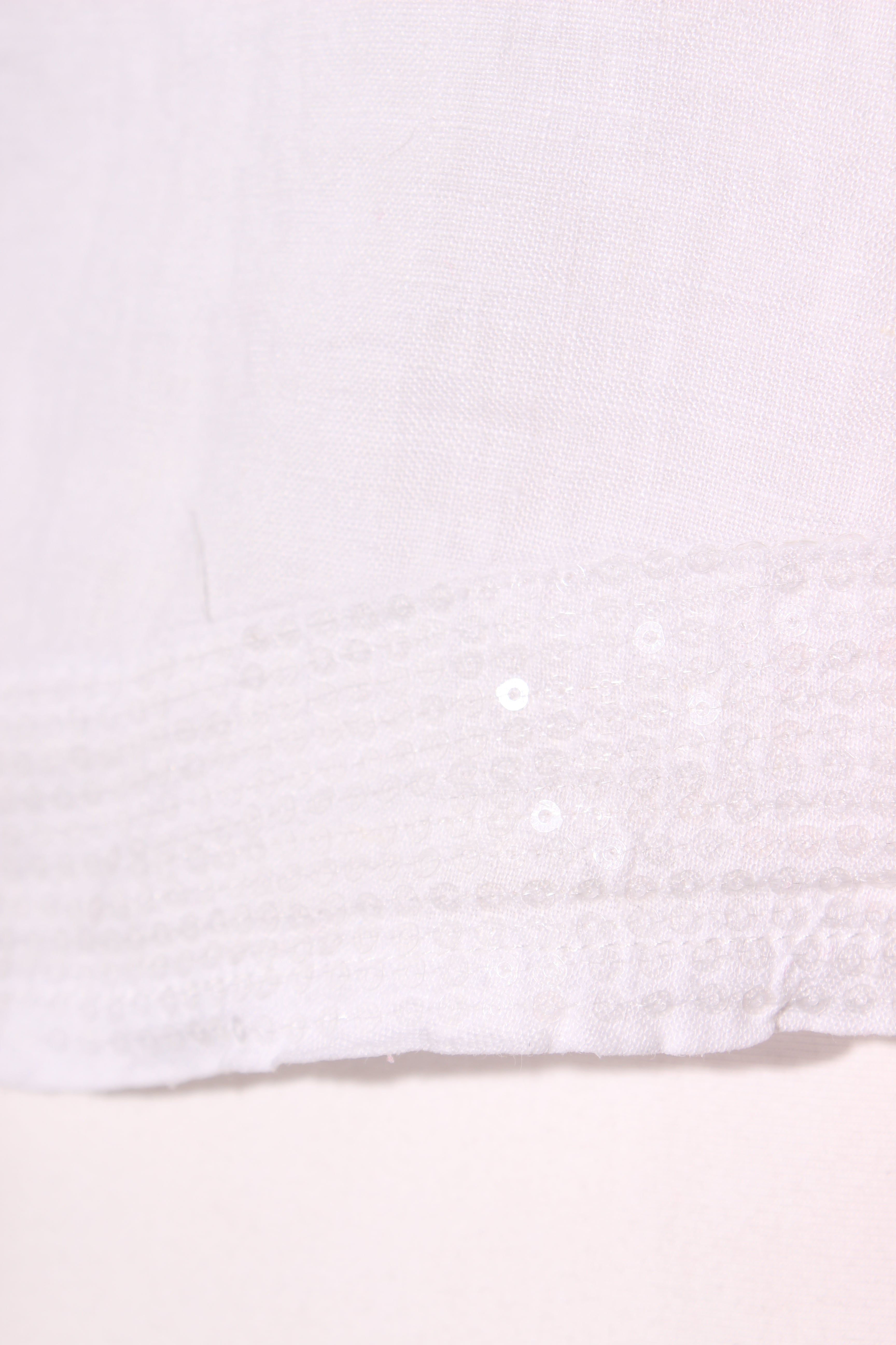 SIZE ON TAG: XLFITS LIKE: 16COLOUR: WhiteFABRIC: LinenCONDITION: Excellent prelovedMEASUREMENTS:BUST: 67cms WAIST: 65cms LENGTH: 66-80cms NOTES: Sequin detailed front of hemline.