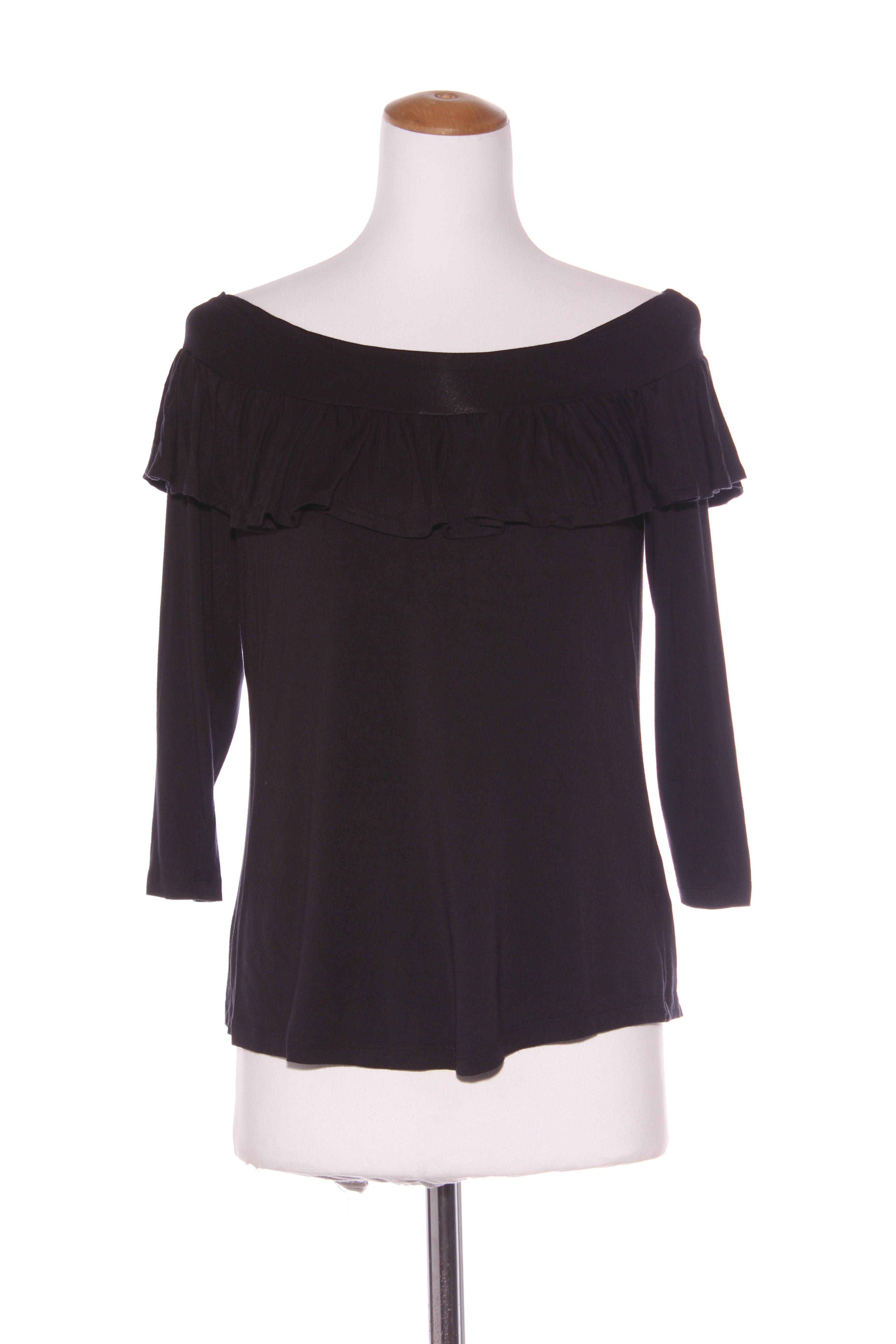 SIZE ON TAG: MFITS LIKE: 12COLOUR: BlackFABRIC: 95% viscose, 5% spandexCONDITION: Excellent prelovedMEASUREMENTS:BUST: 47cms WAIST: 46cms LENGTH: 55cms NOTES: "In the black - Shoulder on". Off the...