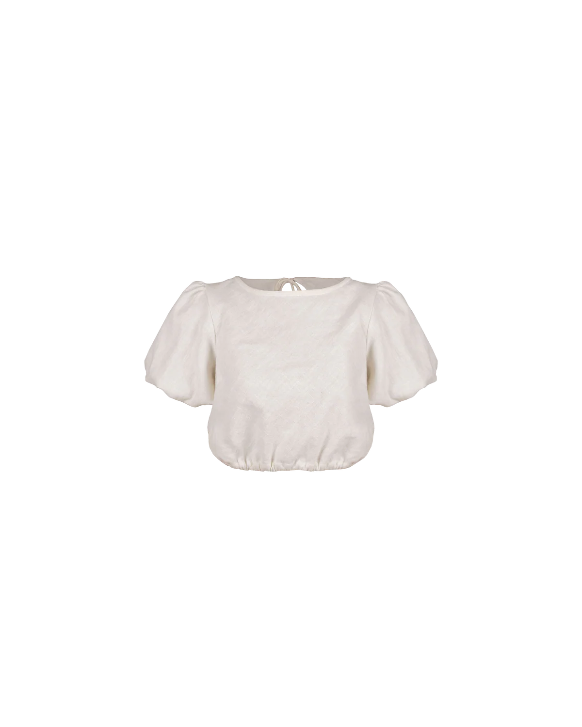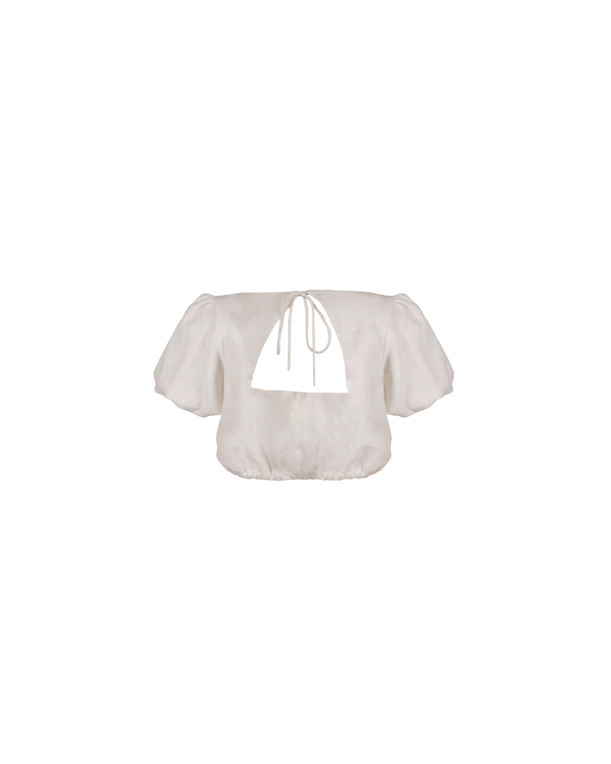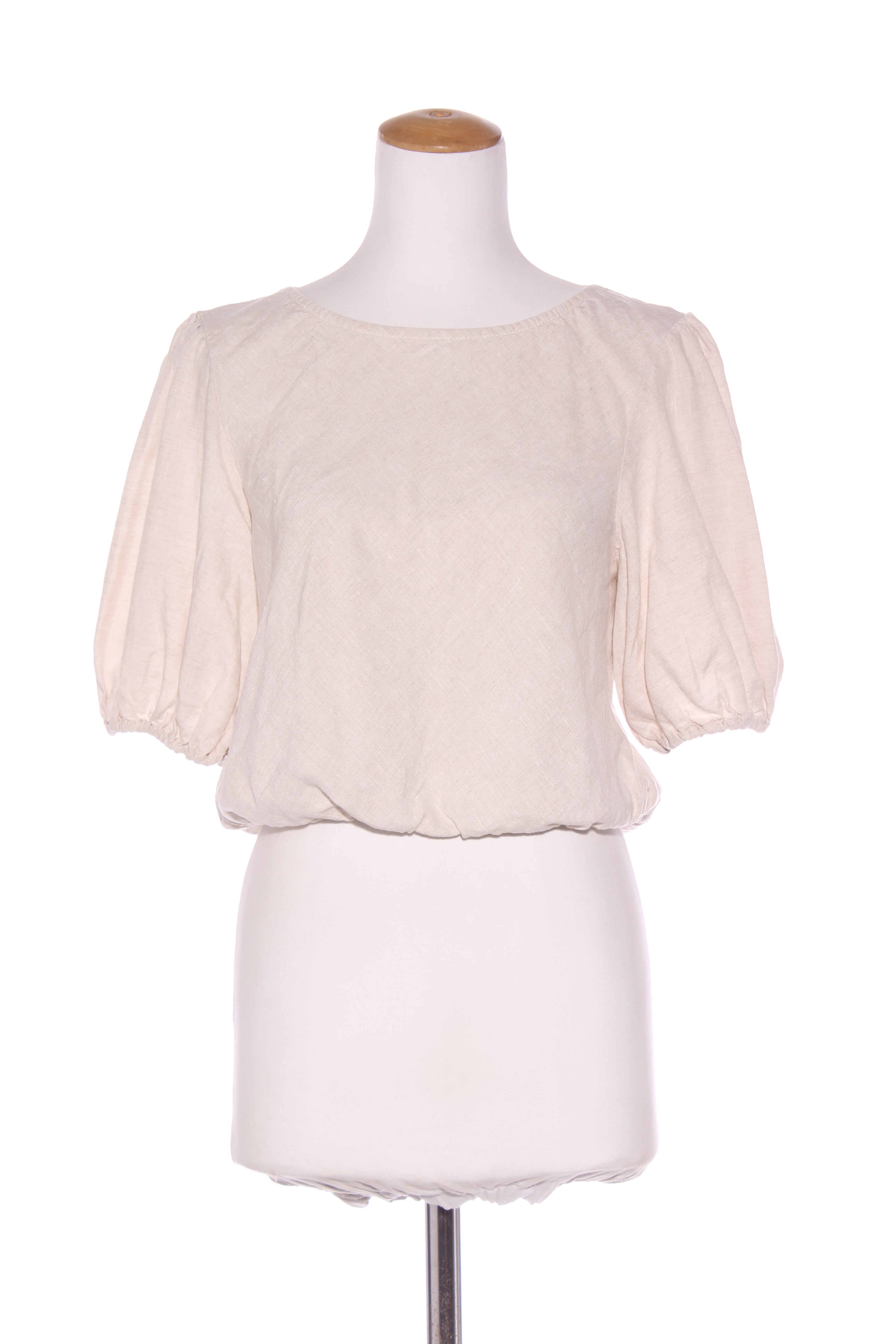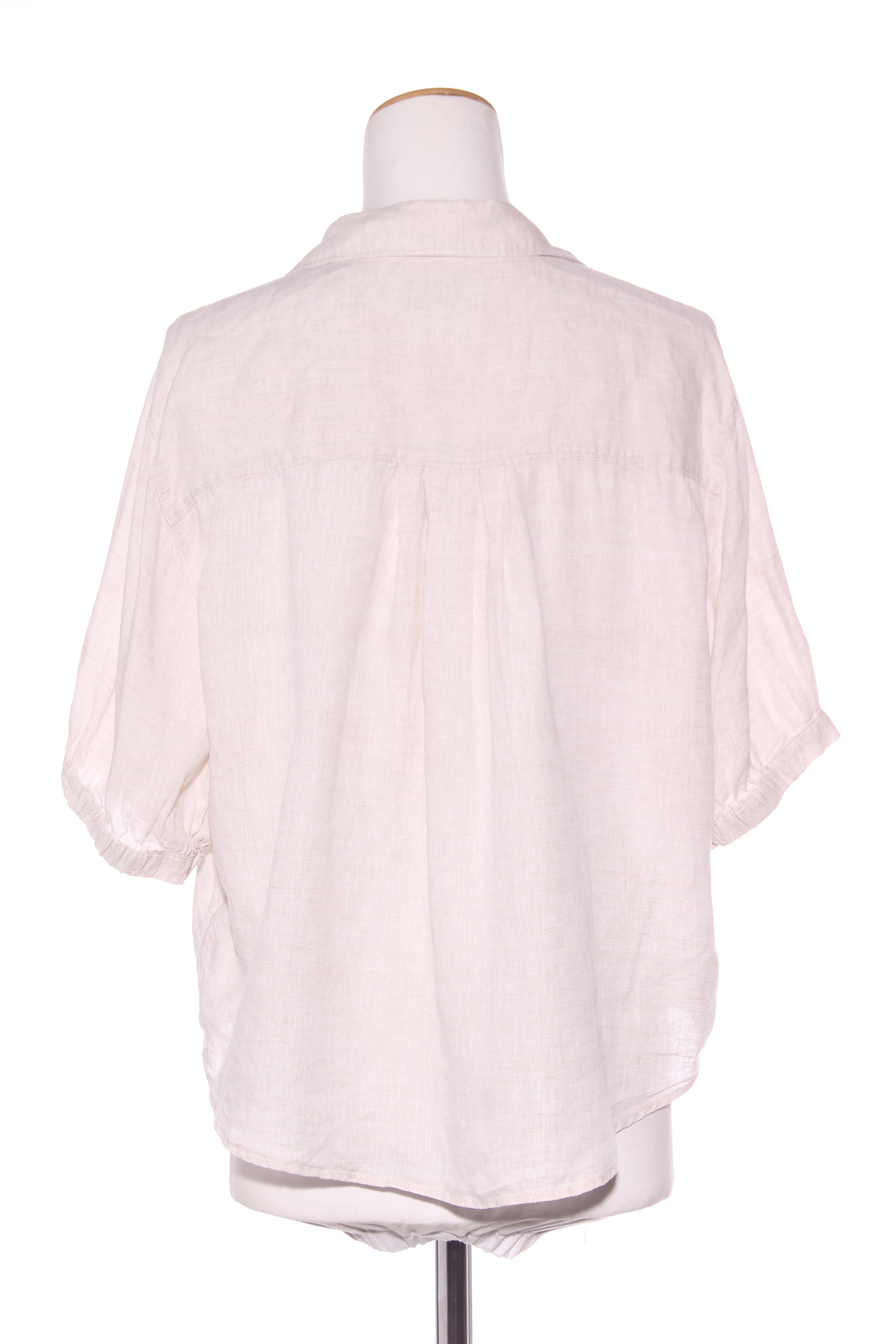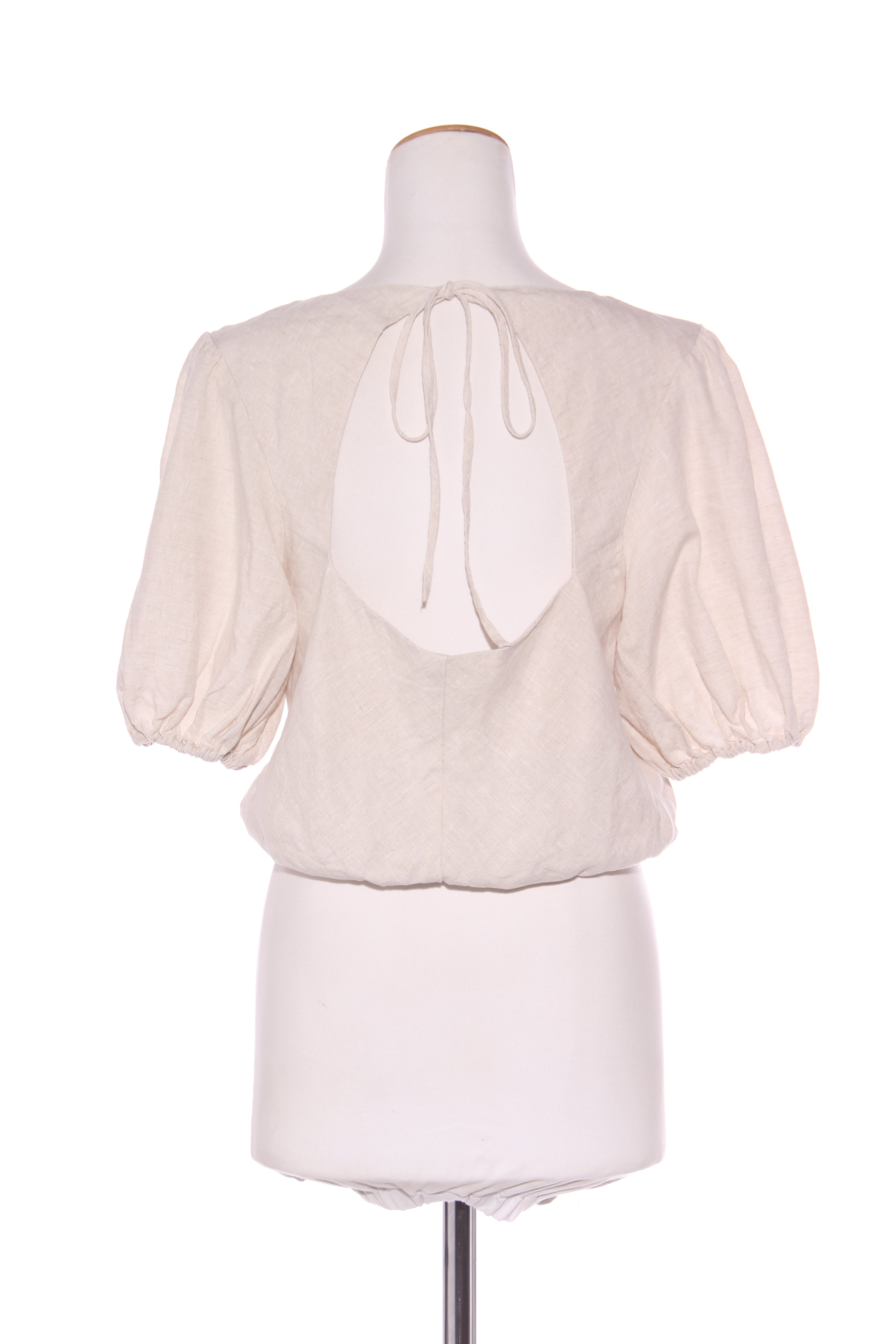 SIZE ON TAG: 12FITS LIKE: N/ACOLOUR: OatmealFABRIC: LinenCONDITION: Excellent prelovedMEASUREMENTS:BUST: 52cms WAIST: 38cms LENGTH: 46cmsNOTES: Crop blouse with puff sleeves and an exaggerated opening at the...