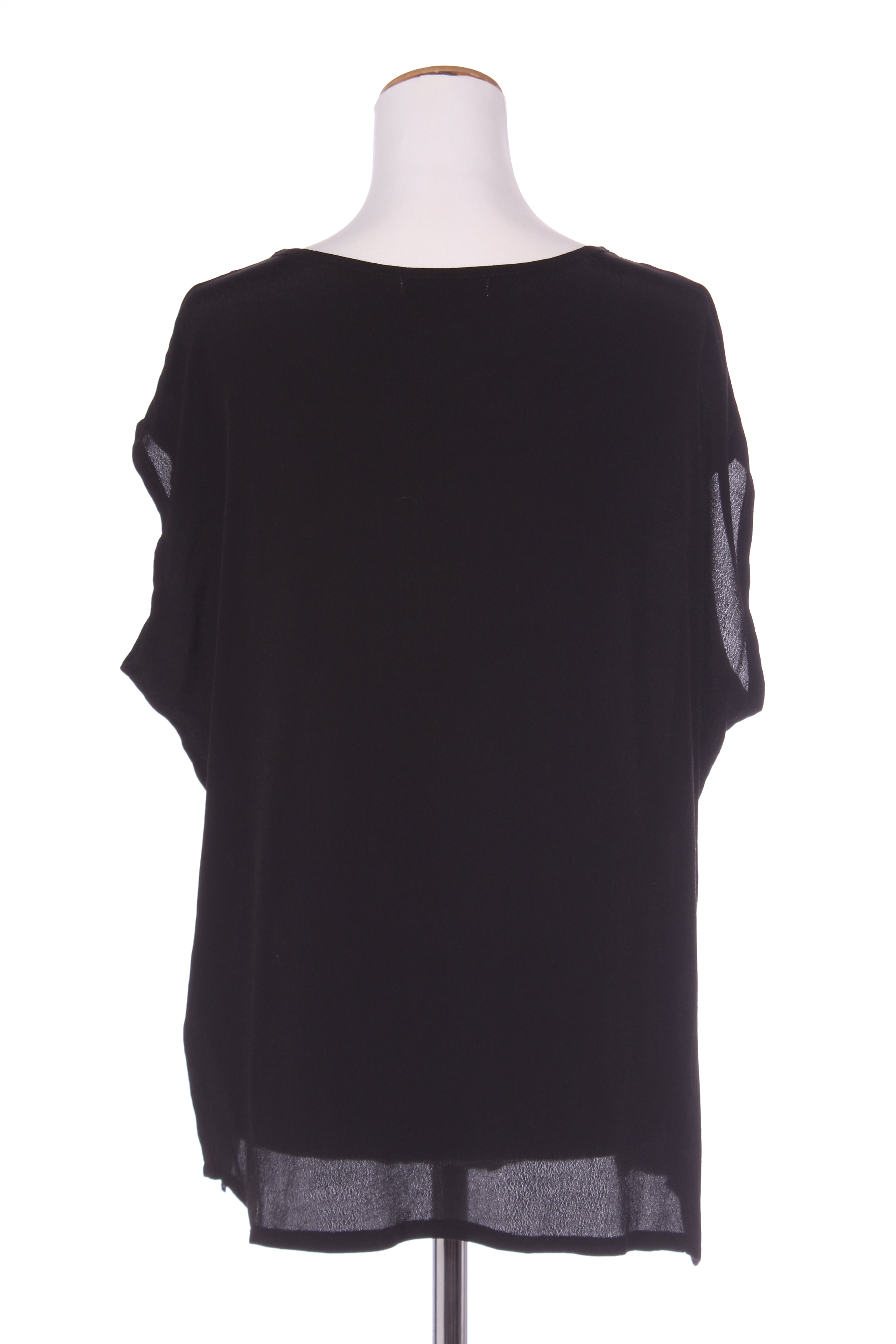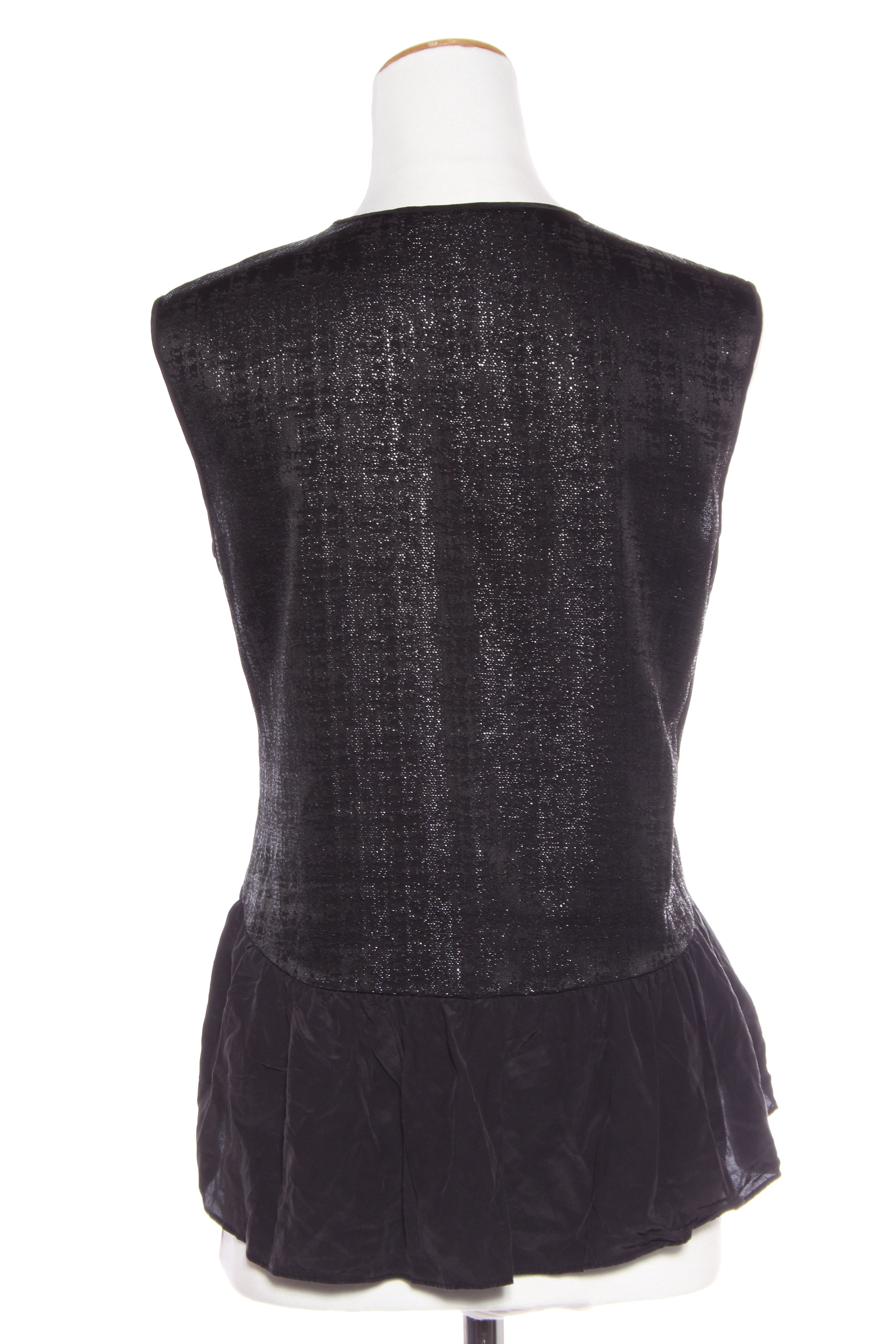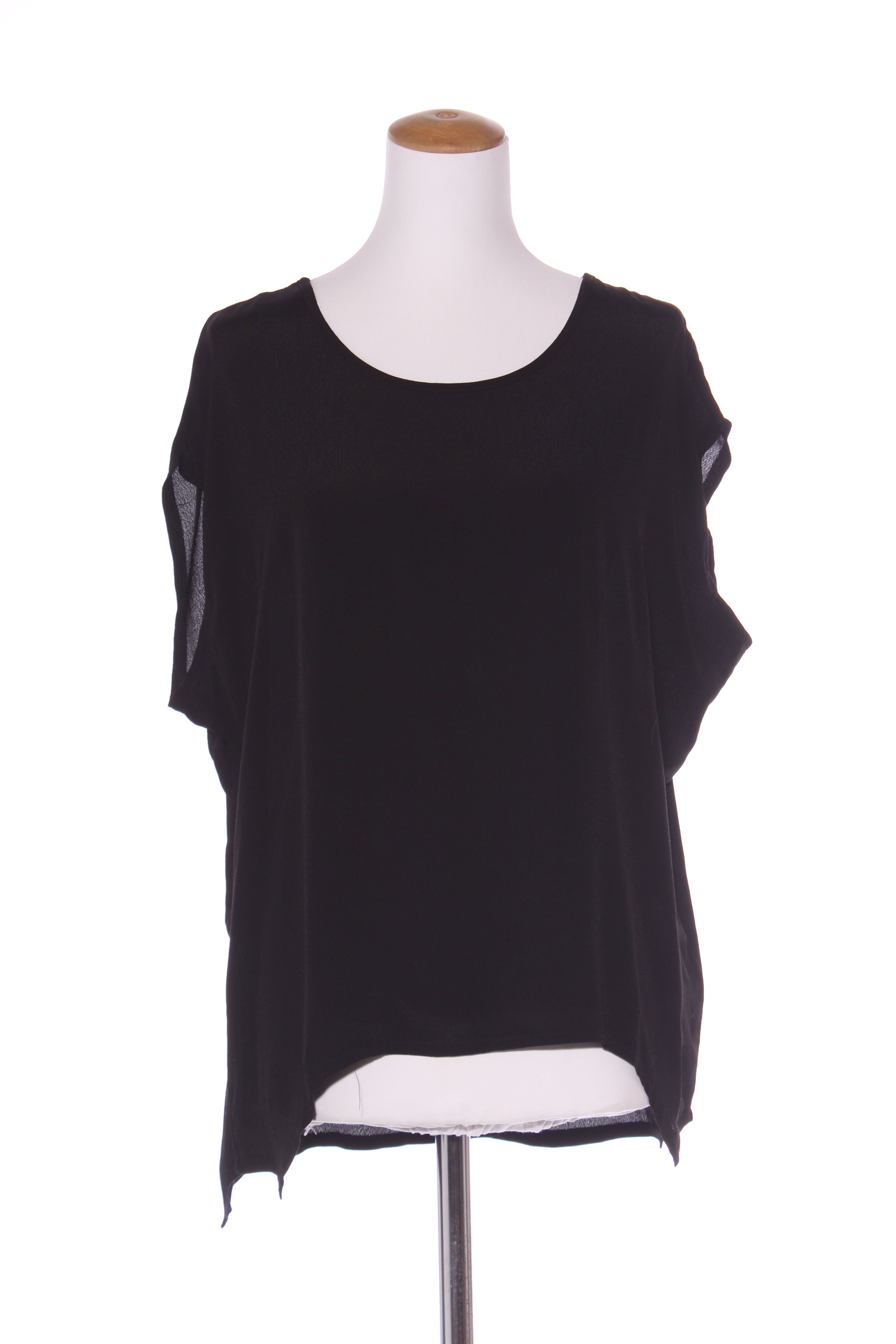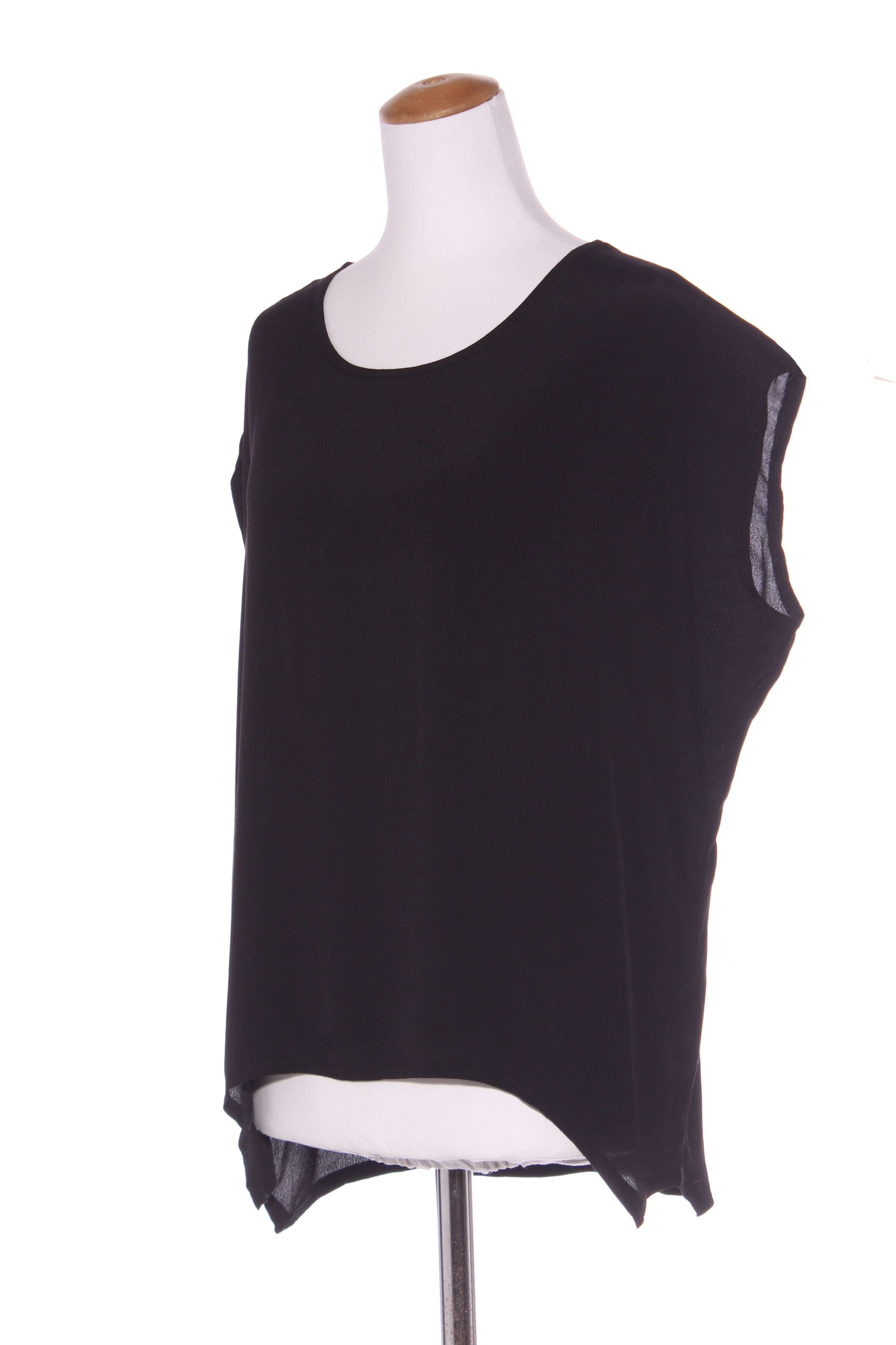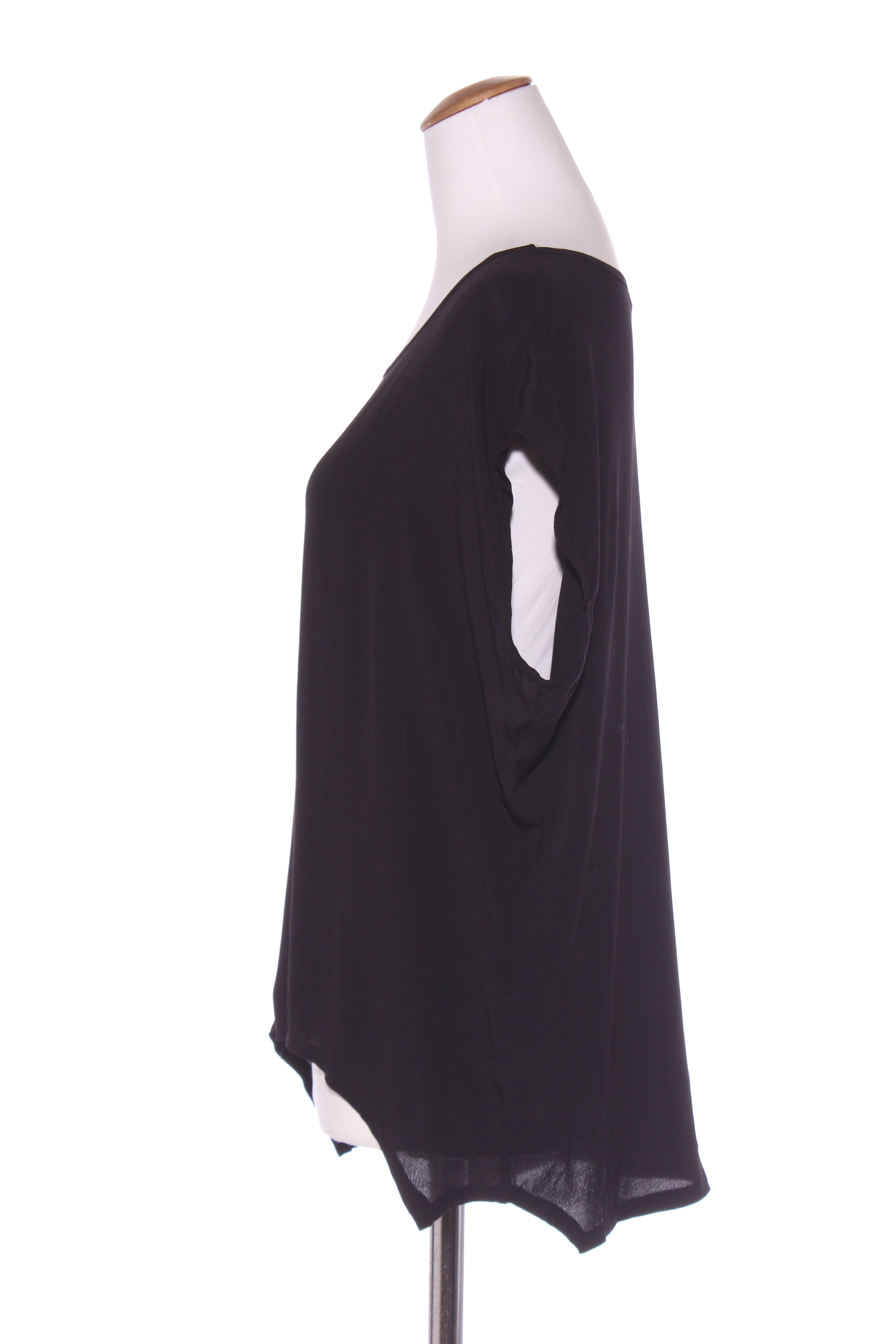 SIZE ON TAG: MFITS LIKE: 12COLOUR: BlackFABRIC: Polyester, silk trimCONDITION: As newMEASUREMENTSBUST: 52cms WAIST: 51cms LENGTH: 60-68cms NOTES: Pull over styling with silk trim hemline. Sits longer at the back.