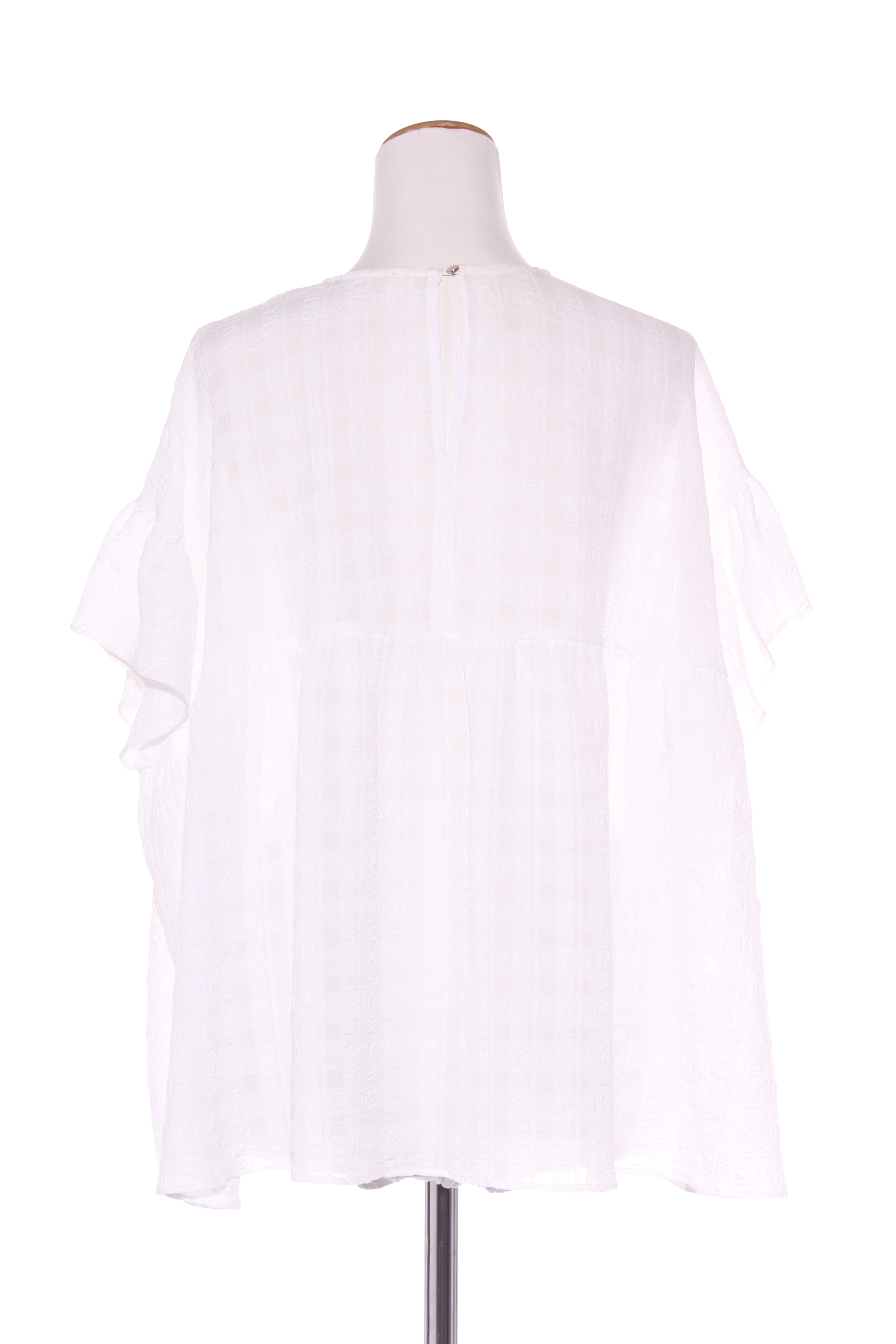 SIZE ON TAG: Tag removedFITS LIKE: 12-16COLOUR: WhiteFABRIC: PolyesterCONDITION: Excellent preloved - main tag removed, care label intactMEASUREMENTS:BUST: 78cms WAIST: Free LENGTH: 61-70cms NOTES: Self patterned check...