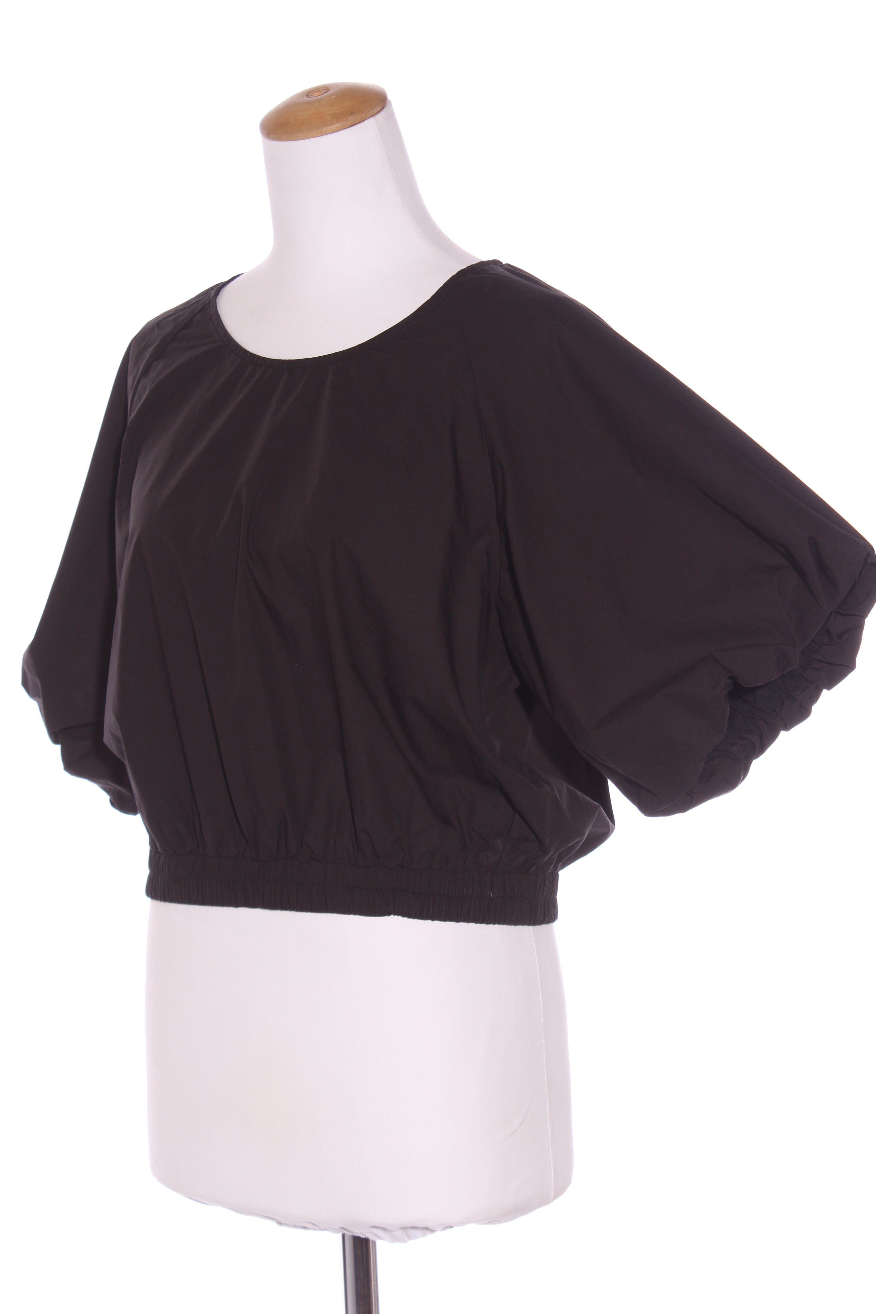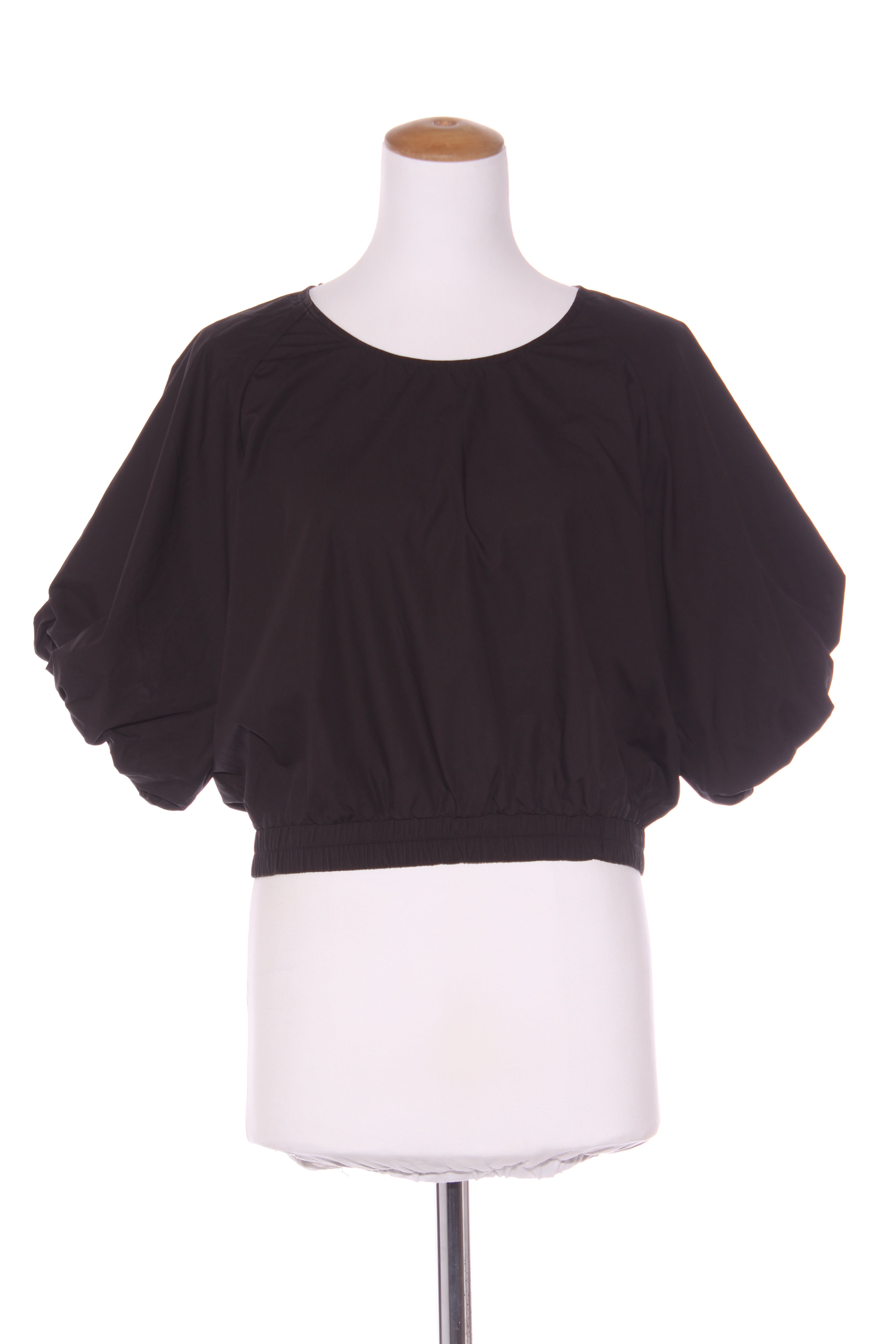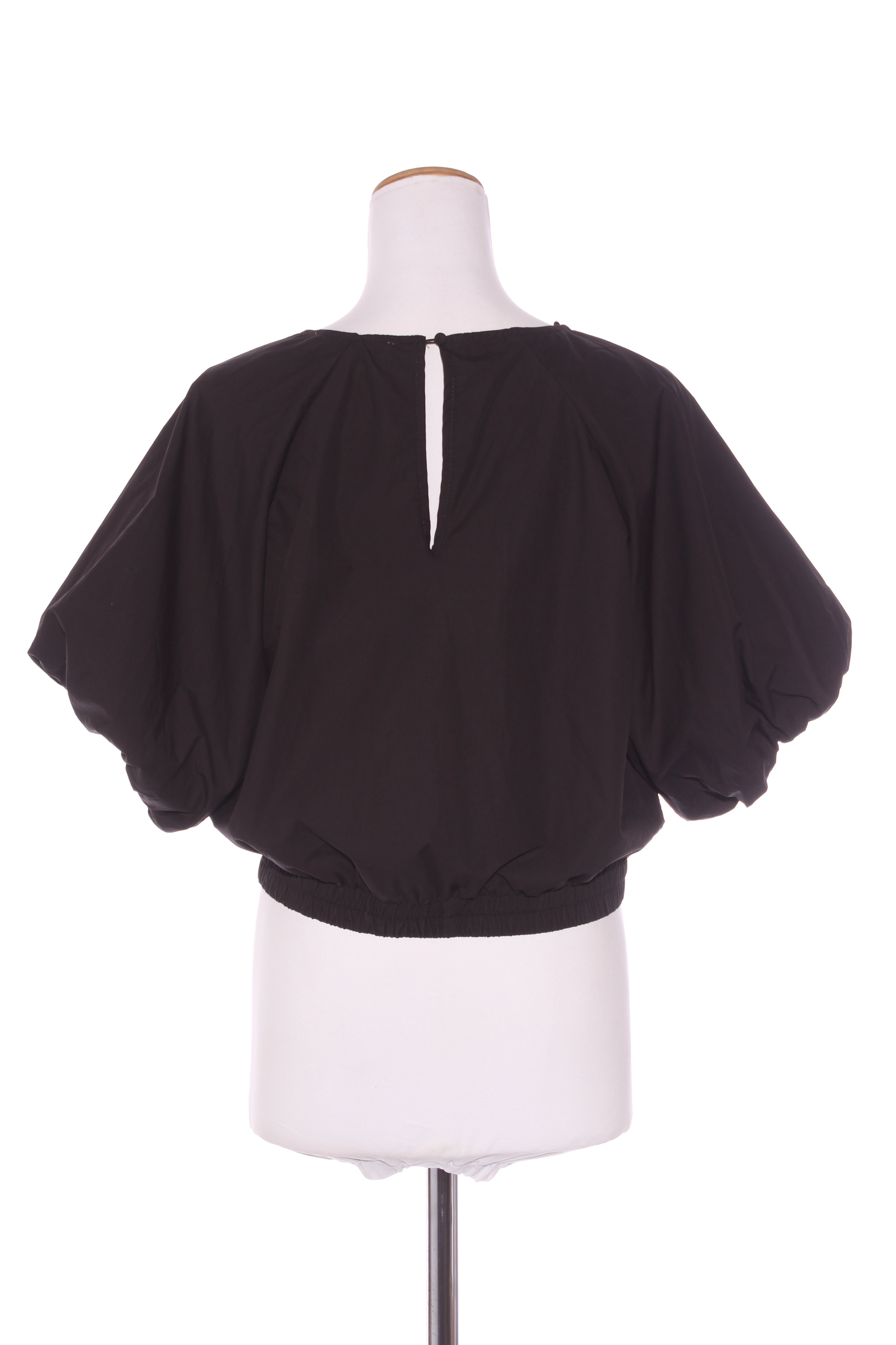 SIZE ON TAG: 12FITS LIKE: N/ACOLOUR: BlackFABRIC: CottonCONDITION: Excellent prelovedMEASUREMENTS:BUST: 42cms WAIST: 39cms LENGTH: 57cmsNOTES: Back zip access. Elasticated shirred body. Flared sleeve ends.