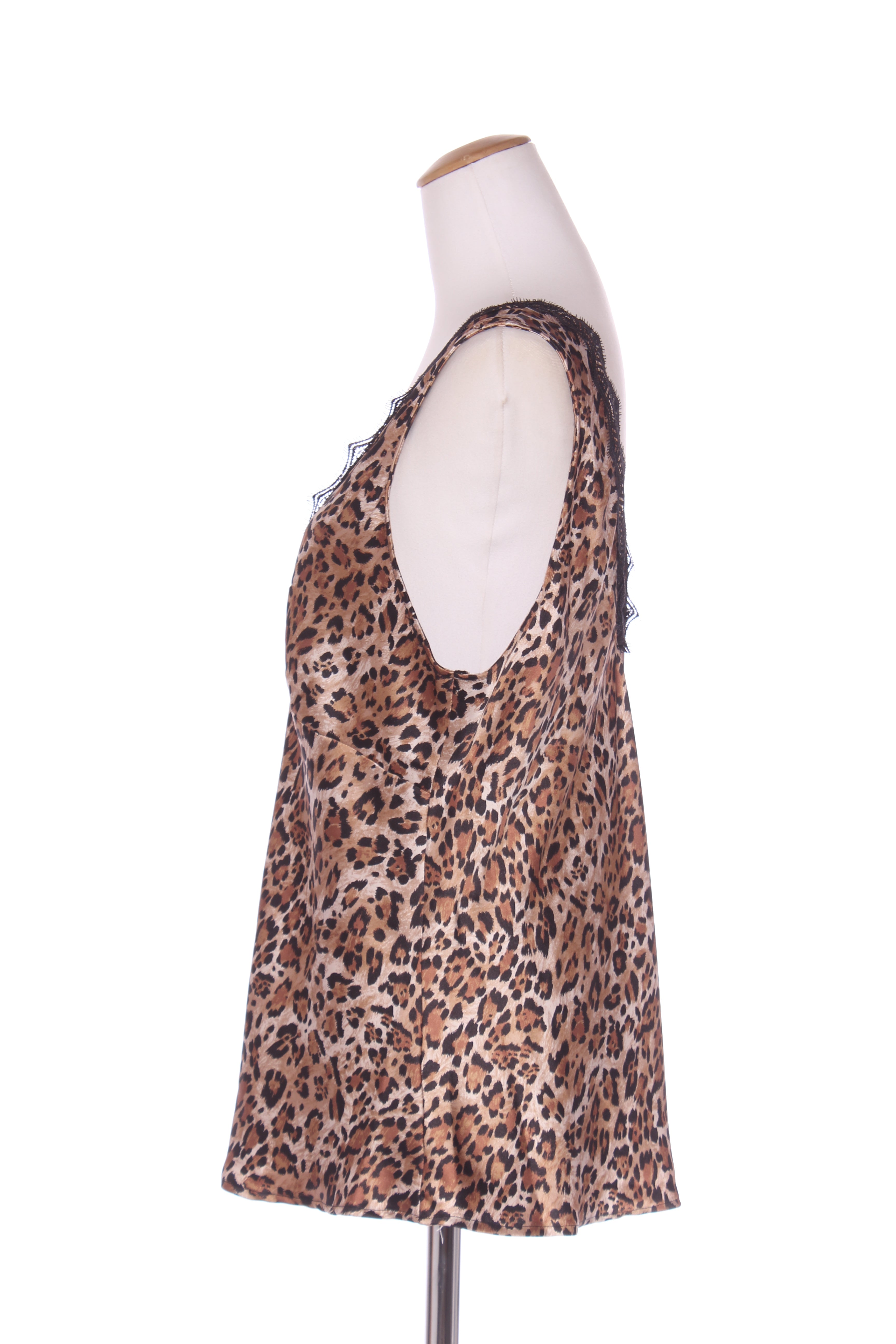 SIZE ON TAG: 14FITS LIKE: N/ACOLOUR: Brown, black, multiFABRIC: Polyester, Trim - nylonCONDITION: Like newMEASUREMENTS:BUST: 57cms WAIST: 58cms LENGTH: 71cmsNOTES: Fabric has some give.