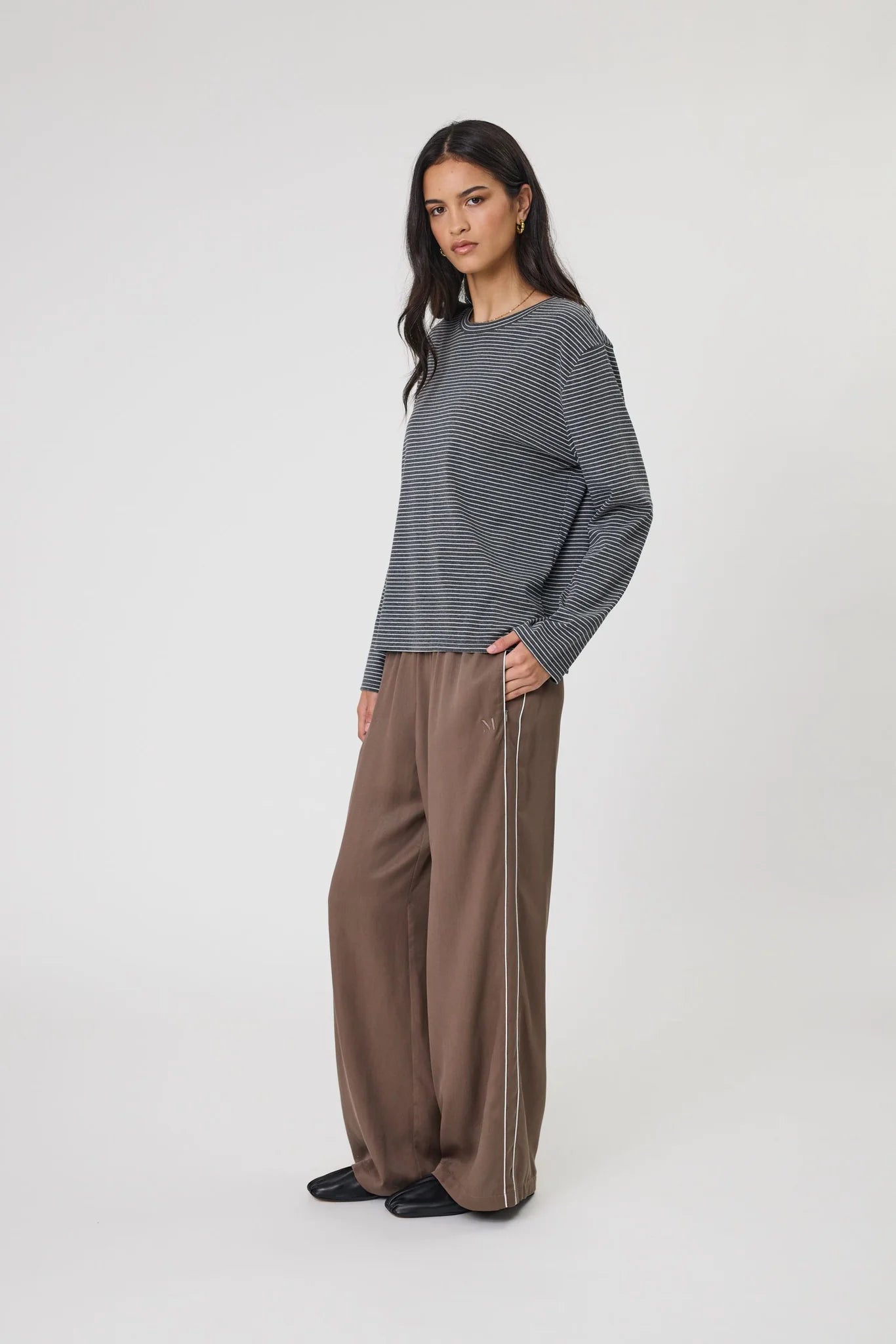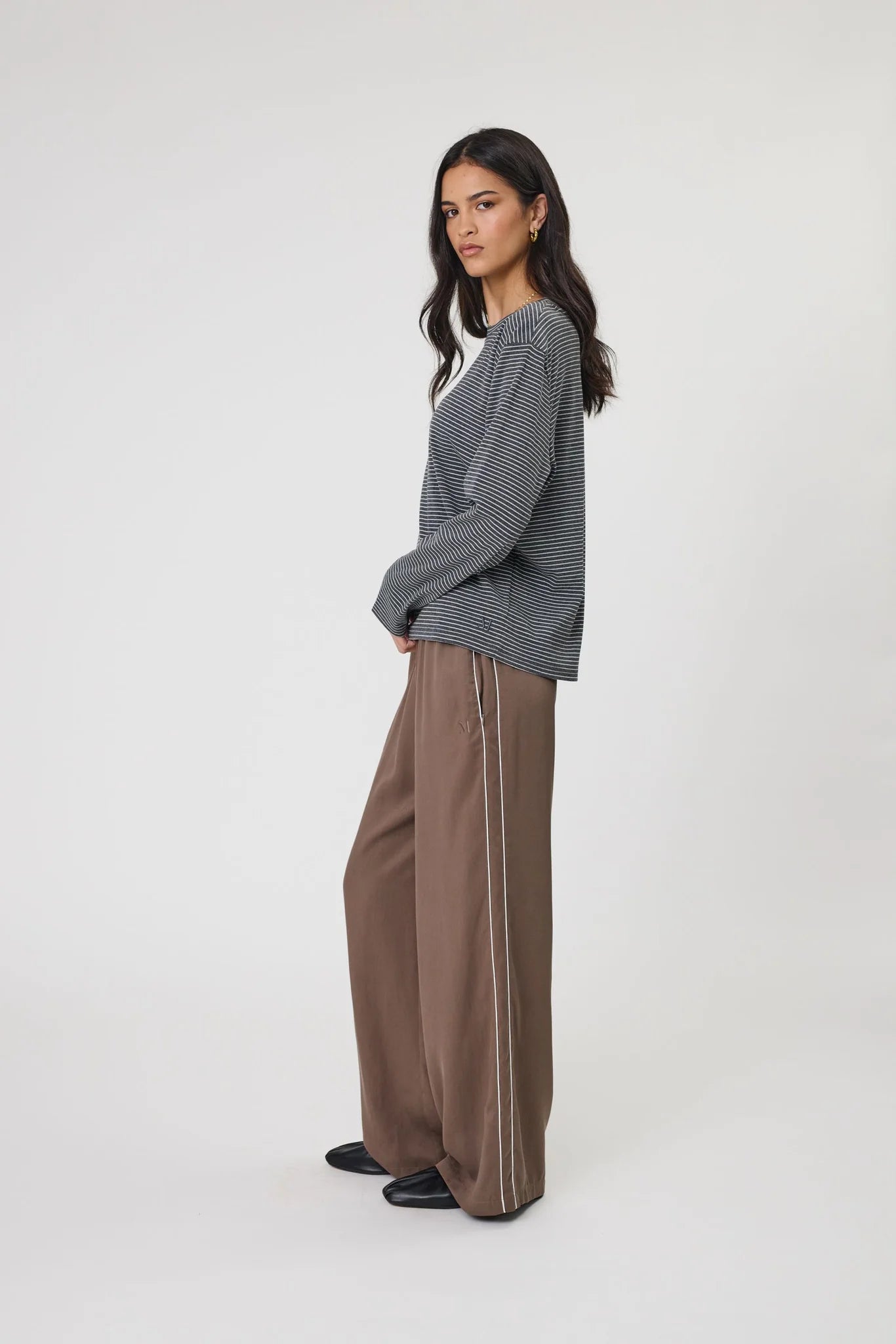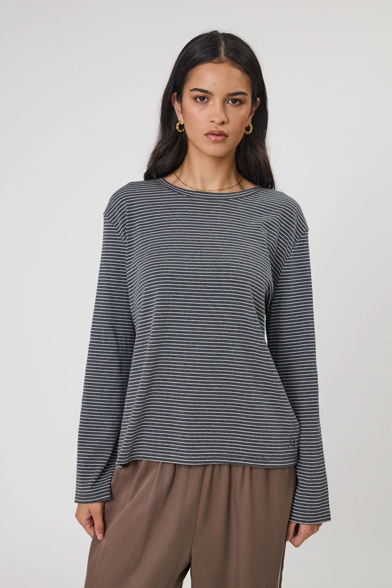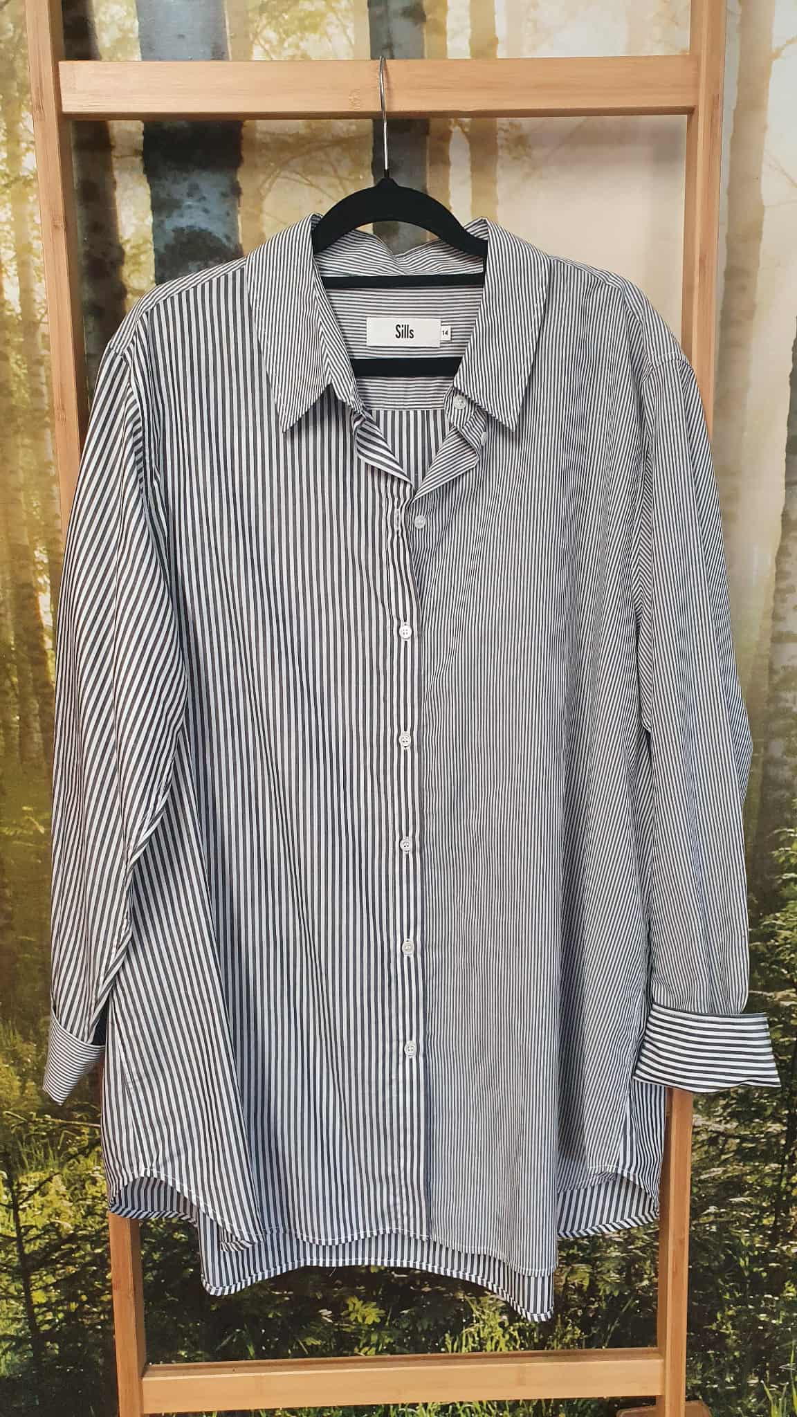 SIZE ON TAG: 14FITS LIKE: N/ACOLOUR: Grey, whiteFABRIC: 70% tencel, 30% cottonCONDITION: Like newMEASUREMENTS:BUST: 61cms WAIST: 67cms LENGTH: 78-84cmsNOTES: Contrasting stripes alternate in this fun and...