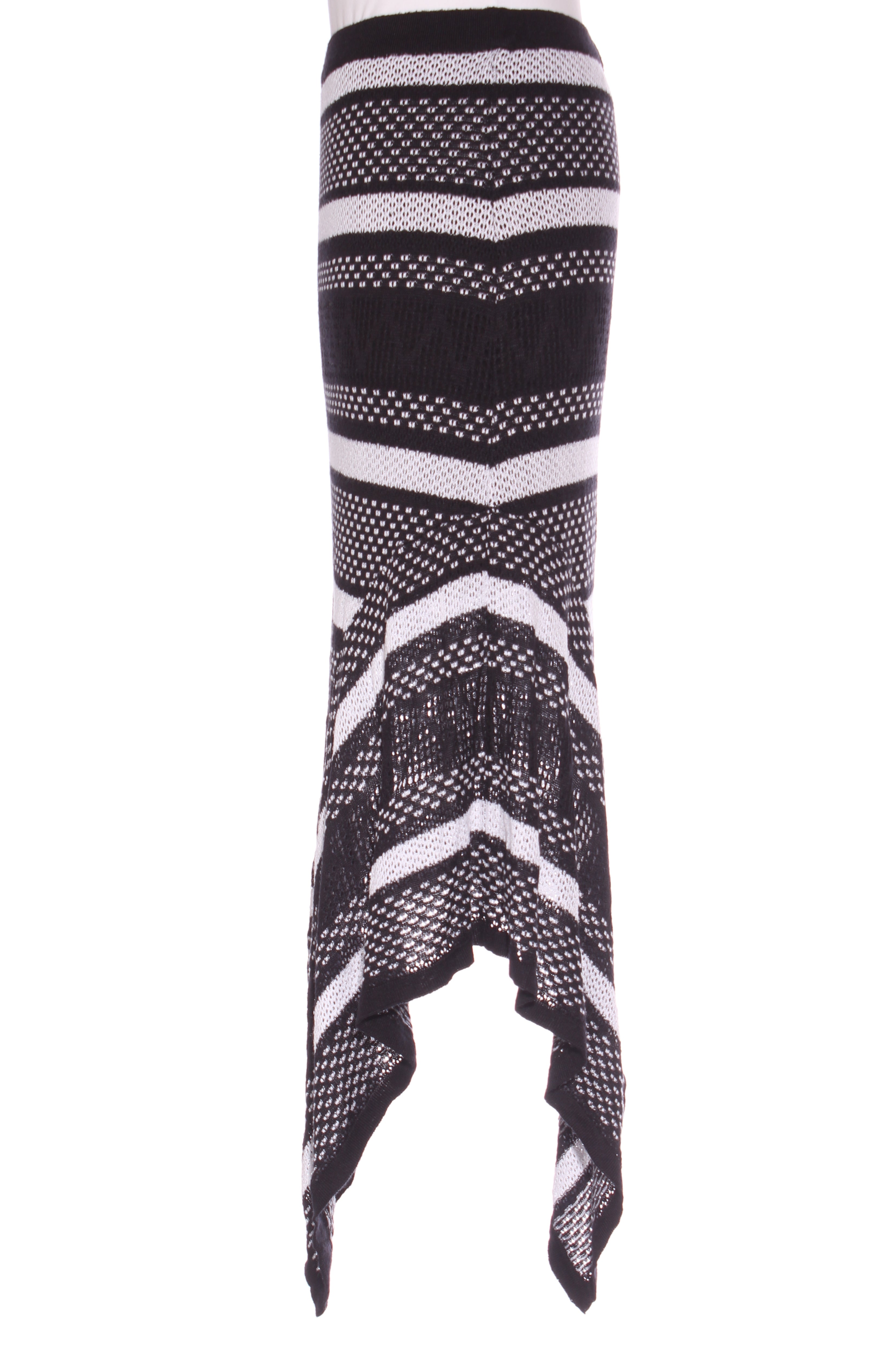 SIZE ON TAG: MFITS LIKE: 12COLOUR: Black, whiteFABRIC: 50% viscose, 50% acrylic, Lining - 90% nylon, 10% spandexCONDITION: Excellent prelovedMEASUREMENTS:WAIST: 36cms HIPS: 45cms LENGTH: 72-101cms NOTES: Made...