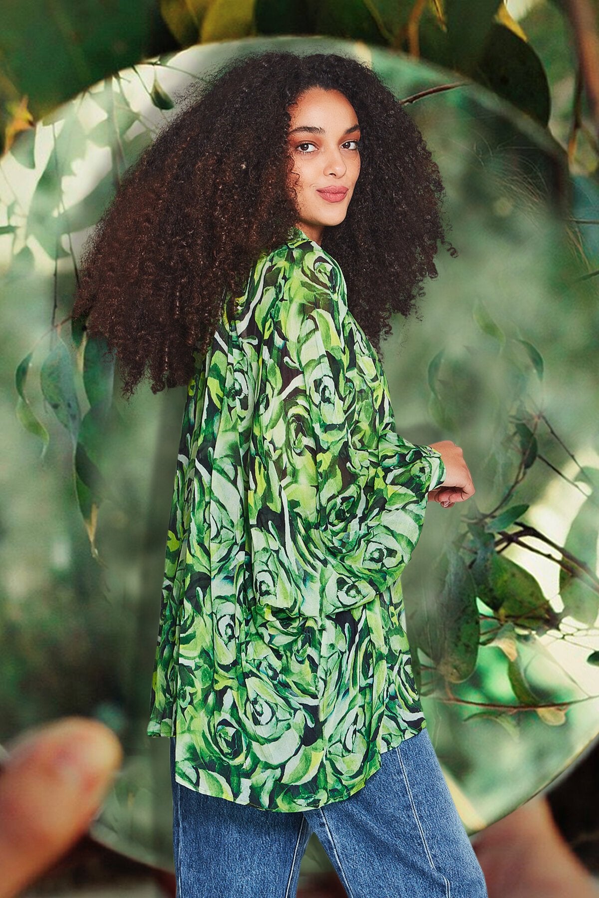 SIZE ON TAG: MFITS LIKE: 12-14COLOUR: Green, multiFABRIC: ViscoseCONDITION: Excellent prelovedMEASUREMENTS:BUST: Free WAIST: 92cms LENGTH: 72cms NOTES: "Rose before bro's - Billow talk" Winter 2022. ...