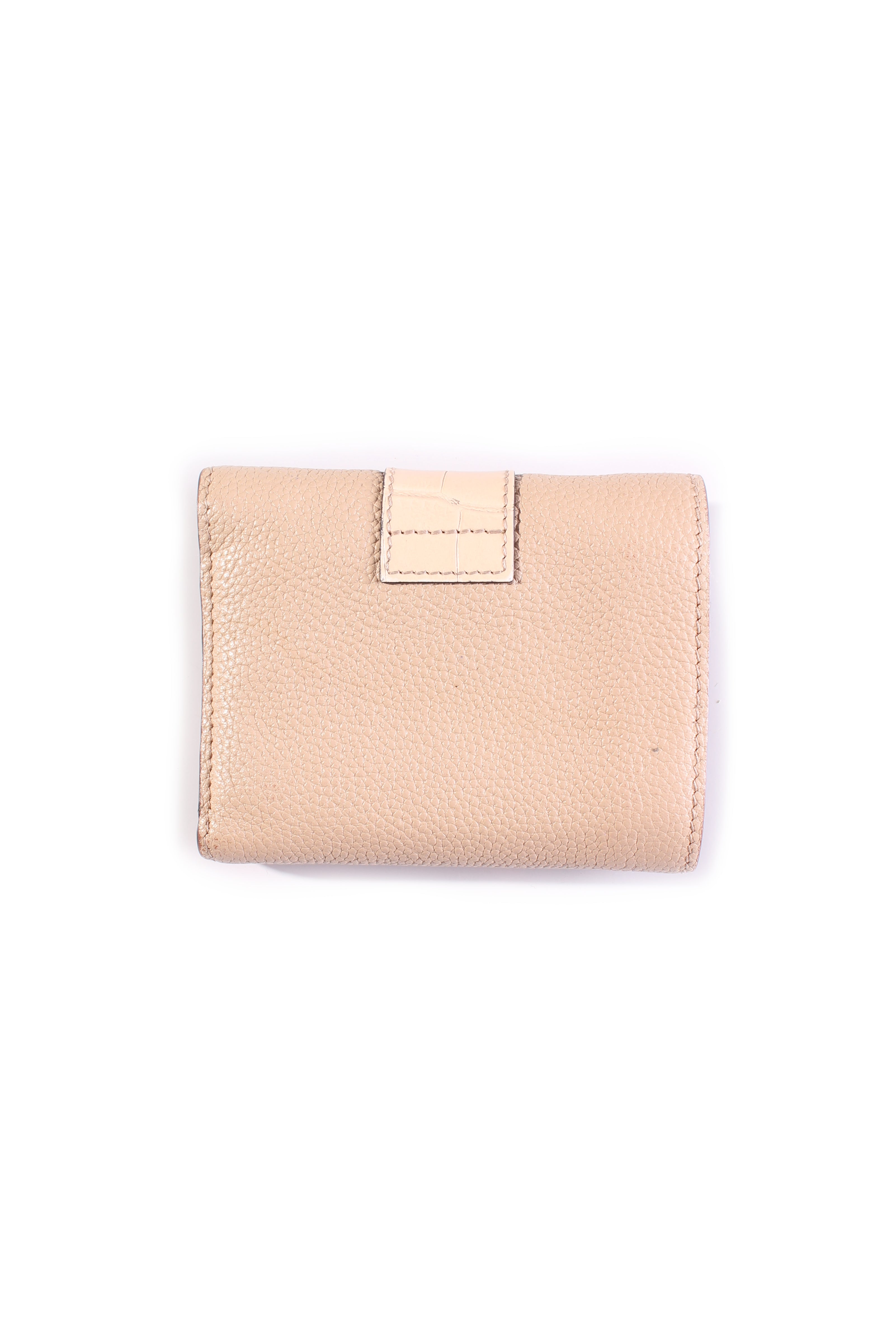 COLOUR: Beige, goldFABRIC: Leather, Lining - textileCONDITION: Very good preloved - leather has pelt off the button which is now goldMEASUREMENTS:HEIGHT: 9cms WIDTH: 12cms DEPTH: 2cms...