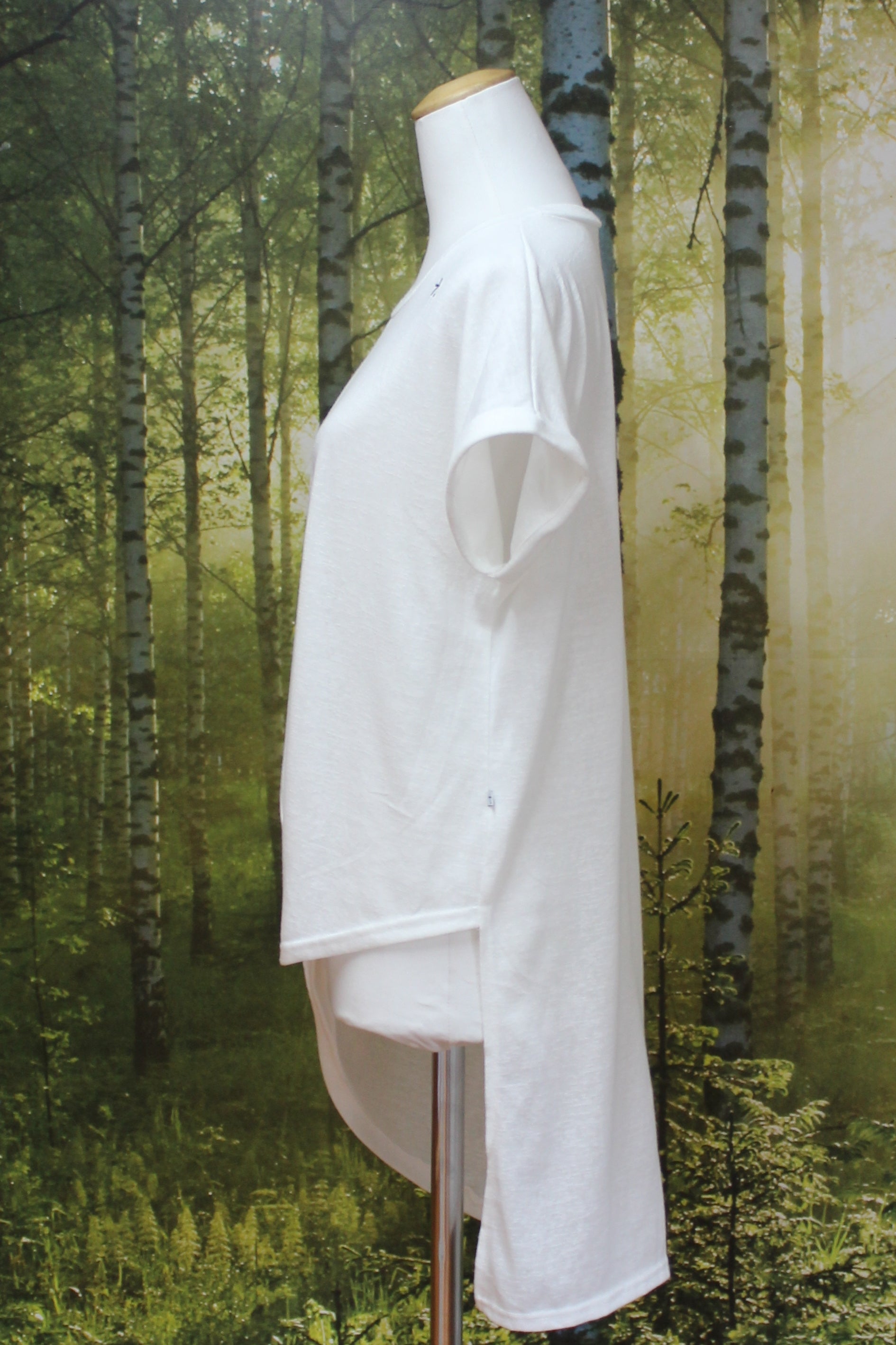 SIZE ON TAG: LFITS LIKE: 14COLOUR: WhiteFABRIC: 80% viscose, 20% linen CONDITION: Excellent prelovedMEASUREMENTS:BUST: 59cms WAIST: 58cms LENGTH: 62-90cmsNOTES: Fabric has stretch.