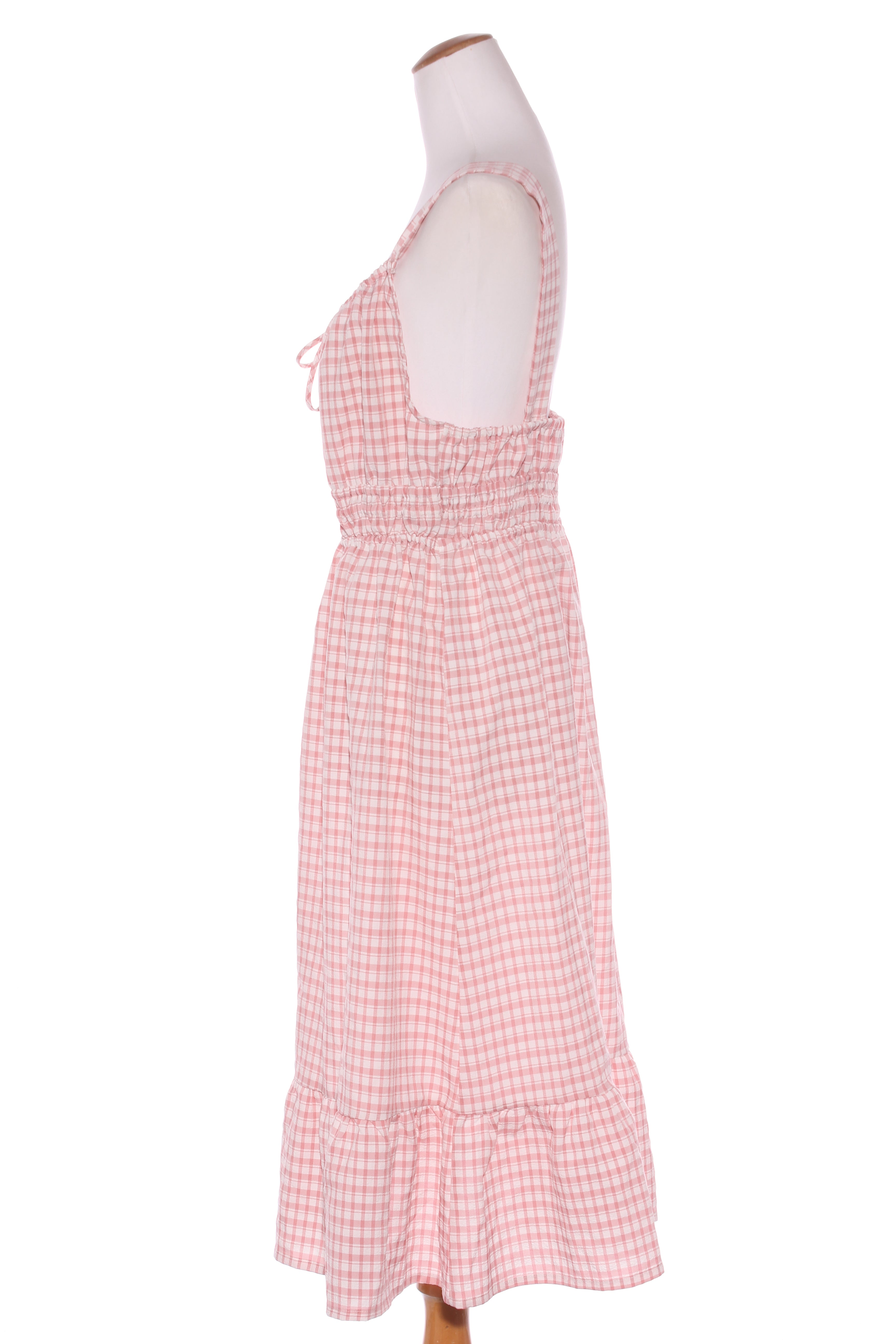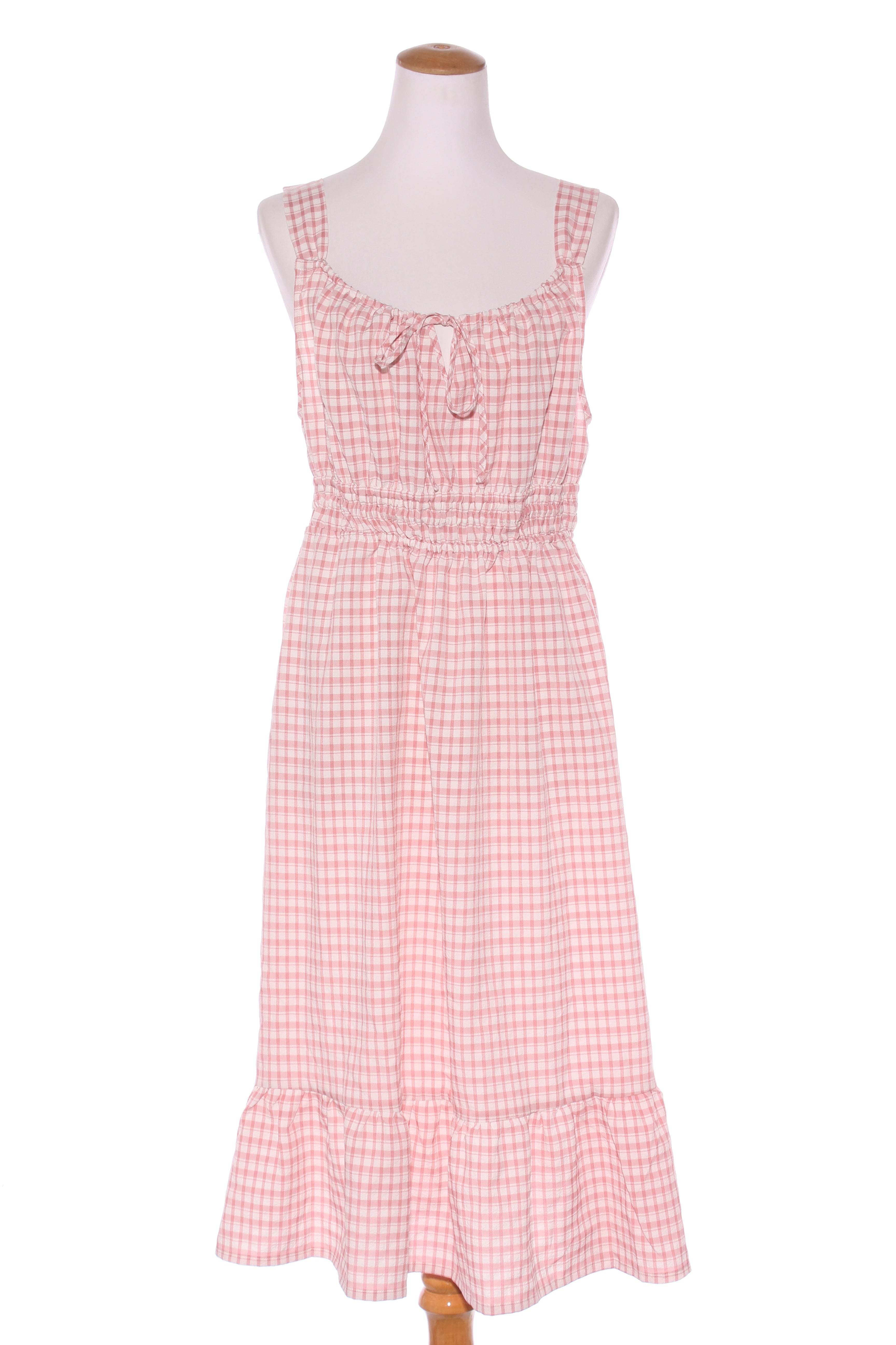SIZE ON TAG: 16FITS LIKE: N/ACOLOUR: Blush pink, whiteFABRIC: 95% polyester, 5% elastaneCONDITION: Excellent prelovedMEASUREMENTS:BUST: 49cms WAIST: 40cms LENGTH: 117cms NOTES: Pull over style. Elasticated waist. ...