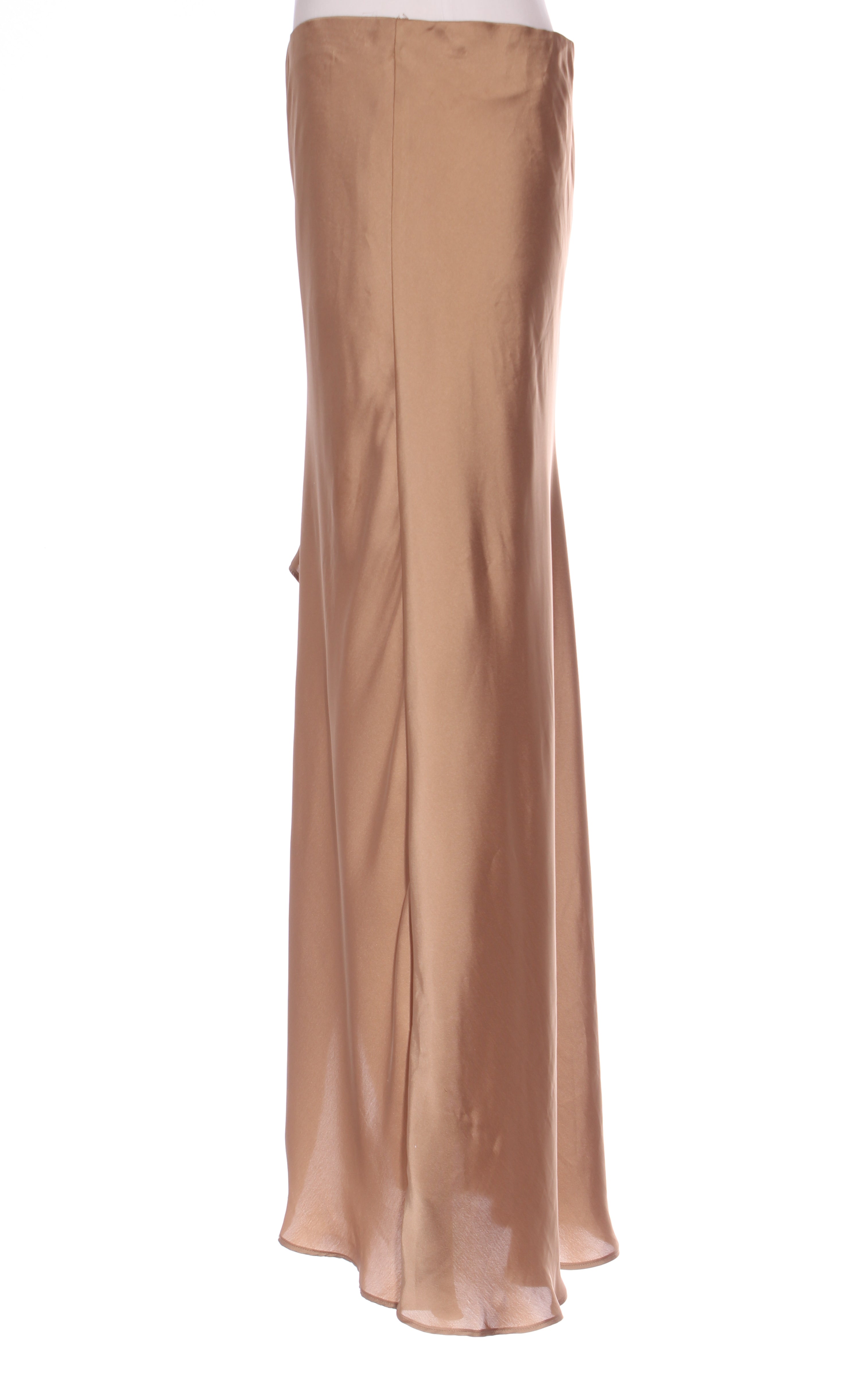 SIZE ON TAG: 14FITS LIKE: N/ACOLOUR: Golden bronzeFABRIC: PolyesterCONDITION: Very good preloved, a few fabric pullsMEASUREMENTS:WAIST: 42cms HIPS: 61cms LENGTH: 44-103cms NOTES: Elasticated waist. Has lining.