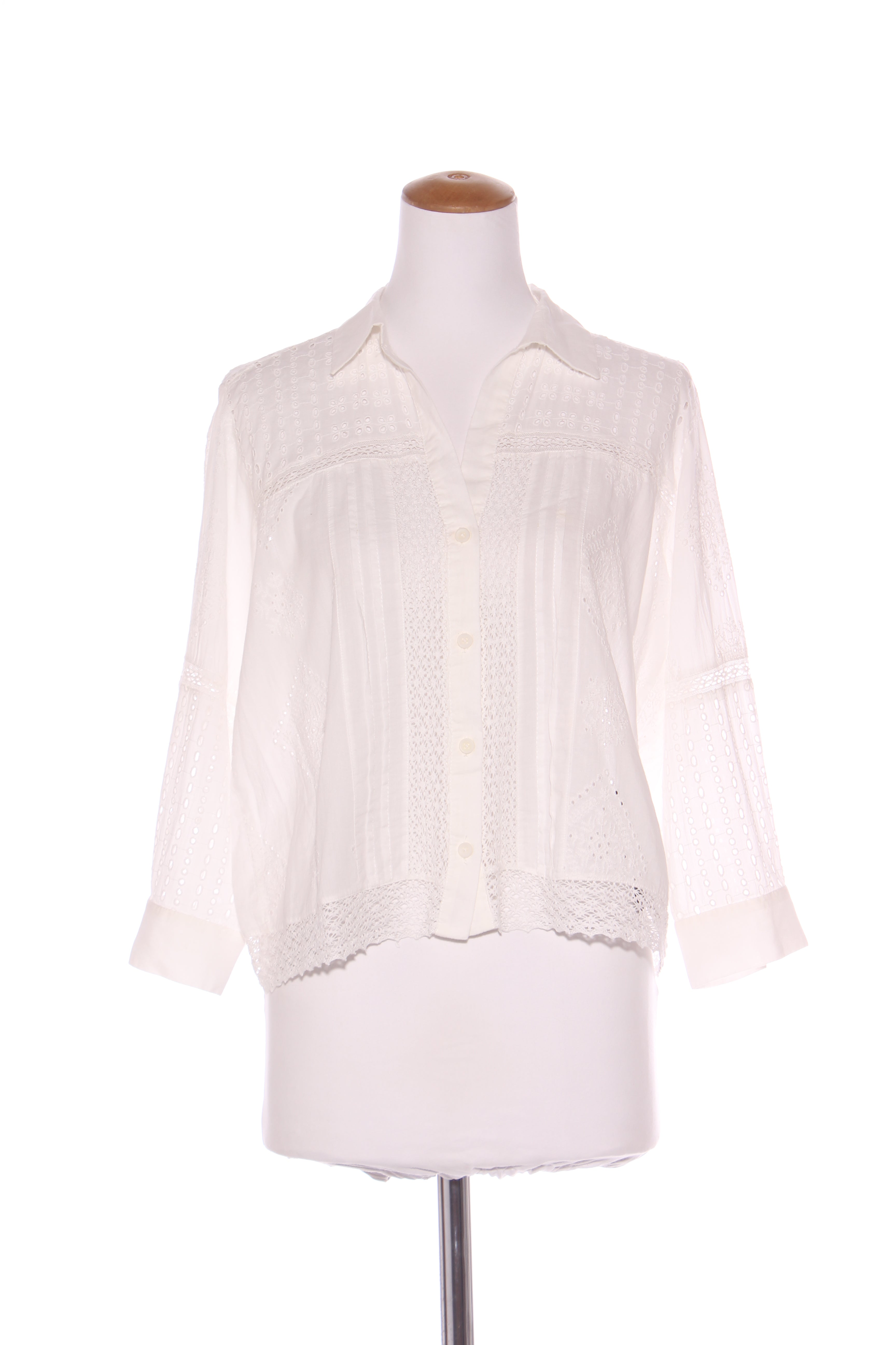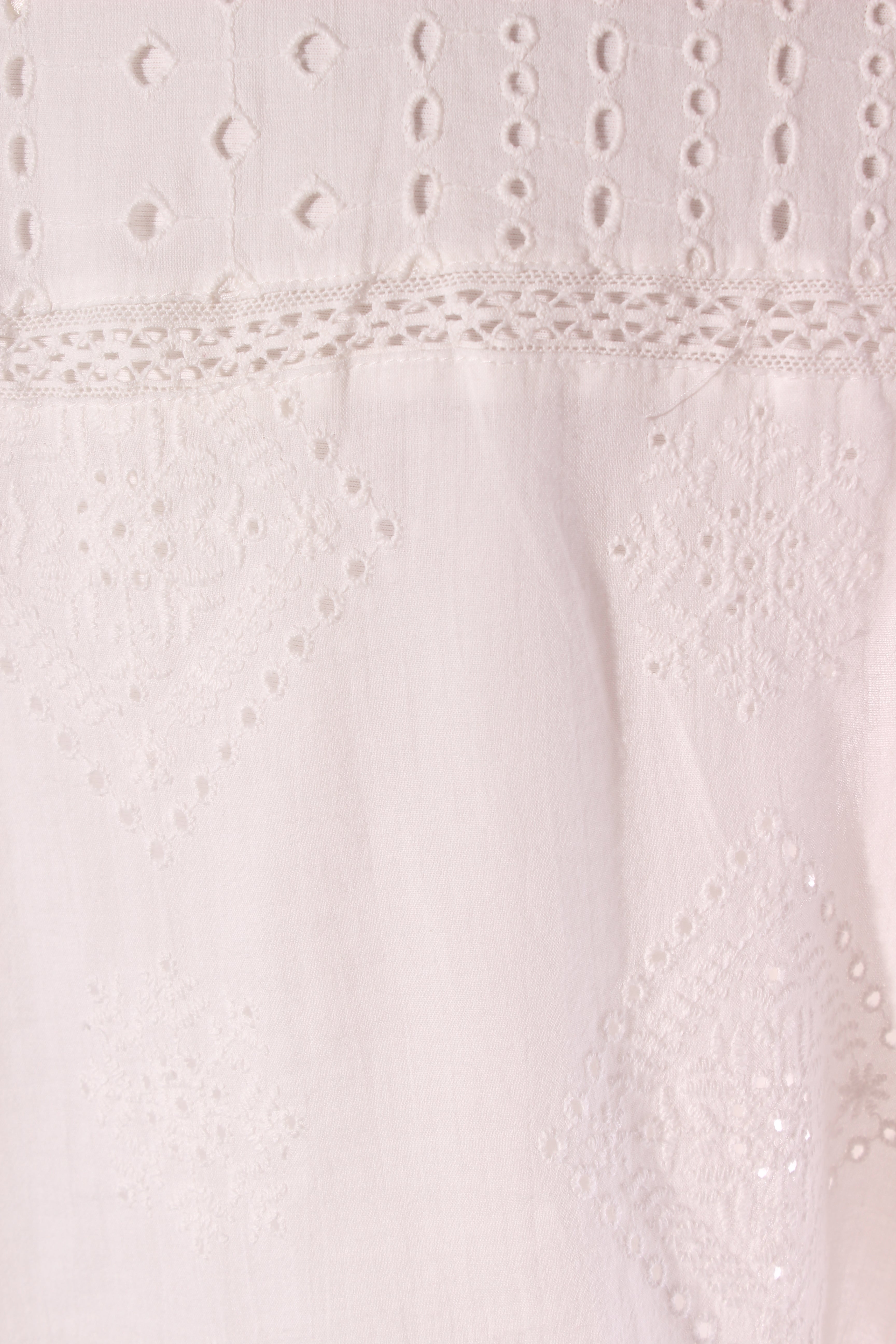 SIZE ON TAG: MFITS LIKE: 12COLOUR: Milk whiteFABRIC: CottonCONDITION: Excellent prelovedMEASUREMENTS:BUST: 55cms WAIST: 56cms LENGTH: 53cmsNOTES: Super pretty broderie anglaise and lace detail. Crop style. Light...